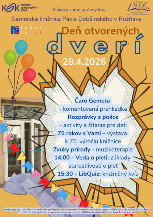 Dňom 23. mája 2026 sa Banícke múzeum v Rožňave, kultúrne zariadenie Košického samosprávneho kraja, opäť zapája do celoeurópskej iniciatívy, 22. ročníka Noci múzeí a galérií. Okrem individuálnych prehliadok otvorených expozícii múzeum pripravilo bohatý program.
