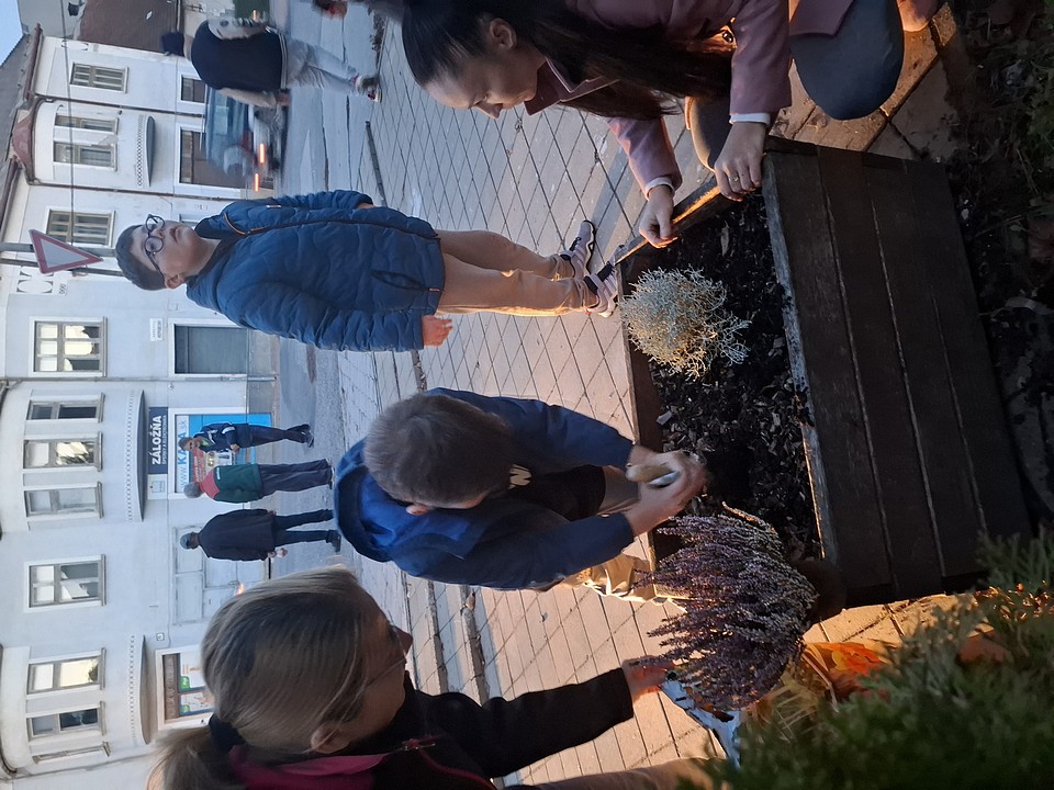 a zem v kvetinárstve Flower v Jelšave – za čo samozrejme ďakujeme a vysadili sme ich spolu s deťmi do kvetináčov pri soche, čím sme aj my prispeli ku skrášleniu svojho okolia. Ani sme sa nenazdali a už bola riadna tma. Po vysadení pekných kvetín sme zapálili sviečky pri soche sv. Floriána a presunuli sme sa do Bistra, kde sme si pochutnali na zákuskoch a čaji.