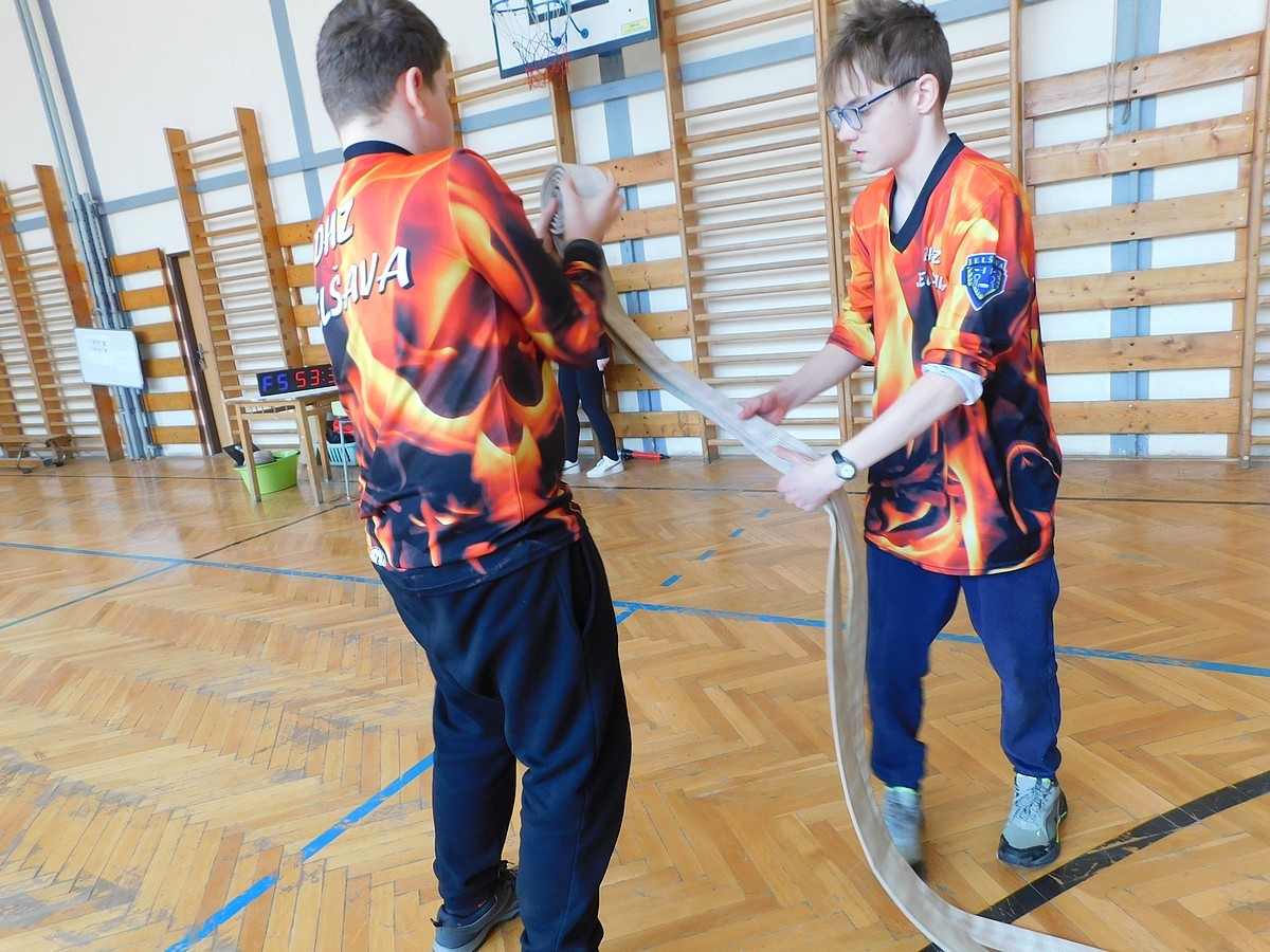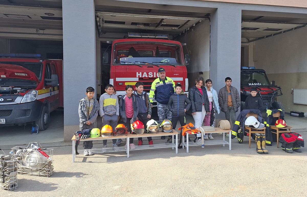 Žiakov sme obliekli do zásahových odevov a mohli si vyskúšať prenášanie hadíc v koši. Ukázali sme, ako sa pracuje s náradím z hasičskej techniky. Zisťovali sme, či deti vedia, prečo vzniká množstvo požiarov domov, príbytkov. Vysvetlili sme potrebu vody pre hasičov. Ukázali sme im novú techniku – štvorkolku a príves núdzového ubytovania, skrinku na AED, ktorý bude umiestnený na zbrojnici v Jelšave.