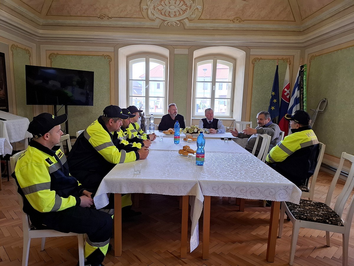 Pred mestským úradom ich privítal veliteľ DHZM Jelšava Ing. Pavol Zapletal, MBA, poslanec mestského zastupiteľstva Karol Sabo a členovia DHZM/DHZ Jelšava. Ukázali sme im priestory úradu, vo veľkej zasadačke bolo pripravené malé občerstvenie a odovzdané malé prezenty.