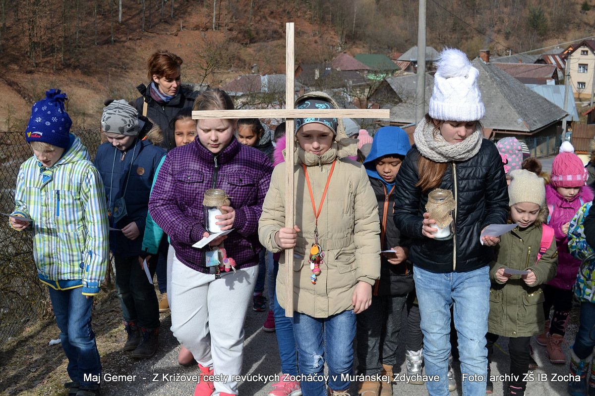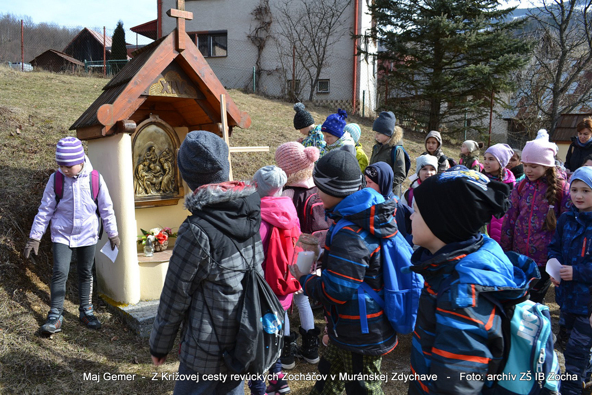 Je už tradíciou, že v Základnej škole Ivana Branislava Zocha Revúca v rámci Školy dobrých skutkov konáme rôzne aktivity. V adventnom období sa zameriavame na dobrú prípravu tela i duše na Vianoce, pôstom sa zase chceme upriamiť na zmysel Veľkej noci. Krížové cesty neodmysliteľne patria k prežívaniu pôstneho obdobia. V predchádzajúcich rokoch sme si krížovú cestu v rámci náboženskej výchovy robievali v miestnom kostole alebo v priestoroch školy. Tohto roku sme sa prvýkrát vybrali so žiakmi prvého stupňa spoznať a precítiť Ježišovu cestu na Kalváriu putovaním krížovou cestou na Muránskej Zdychave. Zamyslenia pri jednotlivých zastaveniach, prednesené spolužiakmi, smerovali mysle prítomných na Ježišove utrpenie a jeho podobnosť s utrpením v našich rodinách. Nesenie jednoduchého kríža a stúpanie do kopca nám tiež pomáhali vnímať, aké to mal Ježiš náročné.