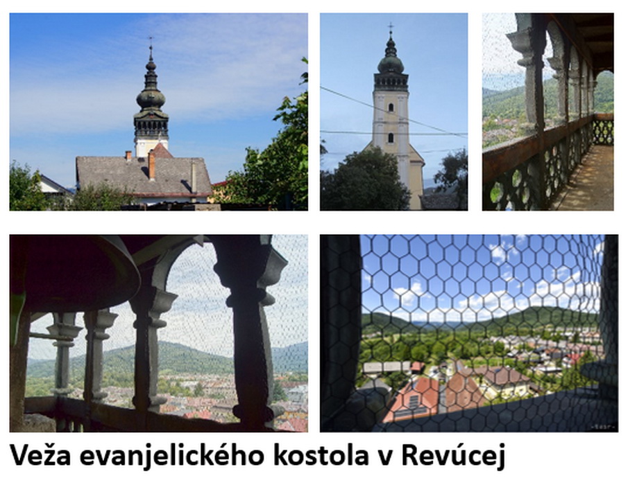 Evanjelický kostol na ulici J. Francisciho 19 je druhou najstaršou stavbou v meste. V jeho hornej časti sa nachádza arkádová ochodza na spôsob gemerských neskororenesančných veží, z ktorej sa ponúka kruhový výhľad na celé mesto Revúca, Revúcku vrchovinu, údolie rieky Muráň i strmé zrázy Muránskej Planiny. Na západnej strane sú mestské lesy, Bodnárka, nová rozhľadňa, z druhej strany vrch Kohút, celé mesto a široké okolie. Do veže vedie 124 schodov, na vrchole sa nachádzajú štyri kostolné zvony, najväčší z nich váži takmer 1,5 tony a je vysoký 110 centimetrov. Sú tu aj informácie o histórii kostola či štvorici zvonov, ktoré sa na vrchole veže nachádzajú.