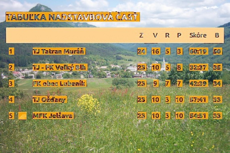 Po minulej sezóne keď sme skončili na 2. mieste rozdielom jedného bodu, cieľ bol jednoznačný postup – skončiť na 1. mieste a postúpiť do V. ligy. Tento rok oslavuje obec Muráň 695. výročie prvej písomnej zmienky o obci a 745 výročie prvej písomnej zmienky o Hrade Muráň, takže tento postup sa určite zapíše veľkými písmenami v obci.