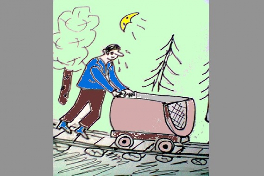 šoférovi, ktorý už niečo s autom najazdil. Urazila sa jeho alkoholom omámená samoľúbosť. Zobral kľúč od auta a hodil jej ho na zem so slovami, nech si ide domov ako chce, že ani on s ňou nejde a pustil sa kuľhavo kráčať po ceste, vedúcej z Pače na Malý Vrch. Kráčal. Kráčal pomaly a čakal, kedy ho manželka začne prosiť, aby ju tu s deťmi nenechával, že čo si tu sama počne. Tak mu to všetko vírilo v opitej hlave. Bol však sklamaný, lebo nič také sa neudialo. Nikto ho späť nevolal. Toto ho ešte viac popudilo a pridal do kroku. Už sa začalo stmievať. Došiel hore na baňu. Z Malého Vrchu sa dalo dostať do Drnavy na banskom vozíku, lebo trať mala úklon k Dionýzu. Tak sa dopravovali väčšinou zámočníci z Drnavy, keď museli dokončiť nejakú prácu v bani a ostali robiť až do poobedia. Mali však pripravený malý banský vozík, na ktorom si vymenili a namazali ložiská. Keď ho na Malom Vrchu dobre roztlačili, vozík zbehol až do Drnavy k domu, kde býval Buday. Tam vozík zastavili a vystúpili. Vozík vyvrátili z koľaje a ráno ho pripojili k vlaku s rudou, ktorý ťahala lokomotíva z Dionýza na Malý Vrch. Takto ho mali znovu pripravený pre prípad potreby. Karol došiel k zásobníkom rudy, kde mal byť spomenutý vozík vyvrátený vedľa koľaje. S vozíkom však niekto pred ním odišiel, tak ho tam nenašiel. Vedľa však bol vyvrátený veľký banský vozík.