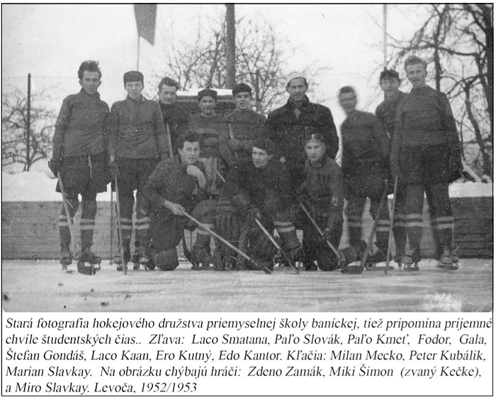 internátu, protiľahlá strana bola oddelená od ulice vysokým murovaným plotom, z vnútornej strany lemovaným radom vysokých majestátnych košatých stromov, zadná strana drôteným pletivom a za ním záhradkou. Plocha ako stvorená na športové ihriská, priam sa núkala na urobenie klziska. Od nápadu nebolo ďaleko k realizácii, nádejní hokejisti začali uvažovať aj o postavení drevených mantinelov, aby každú chvíľu nemusel hľadať puk zaborený v snehu.