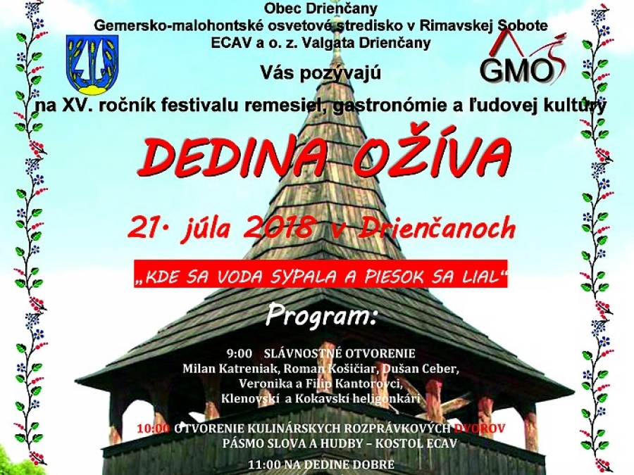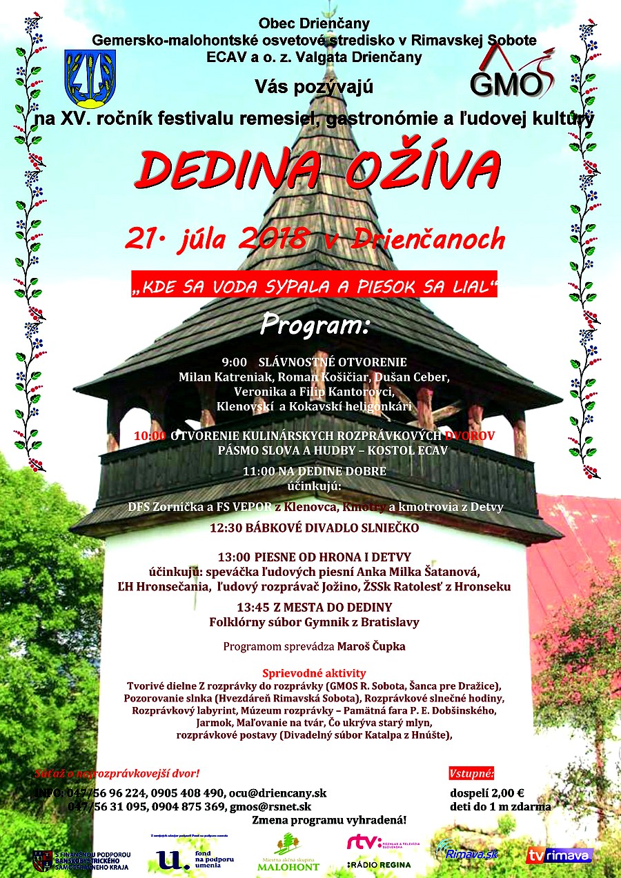 Od 11:00 v programe pod názvom Na dedine dobre sa predstavia DFS Zornička a FS Vepor z Klenovca, Kmotrovia a kmotry z Detvy.