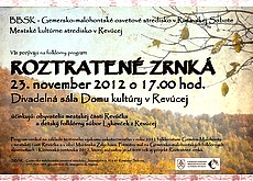 Dňa 23. novembra 2012 o 17.00 sa v Divadelnej sále Domu kultúry v Revúcej uskutoční folklórny program Roztratené zrnká v rámci rovnomenného projektu podporeného v roku 2012 aj Ministerstvom kultúry Slovenskej republiky. Cieľom projektu je napomáhať snahe o koncepčnú výskumnú činnosť tradičnej ľudovej kultúry Gemera – Malohontu a prispievať k jej prezentácii a popularizácii. Výsledkom sú už tri scénické spracovania uvedené v rámci Gemersko-malohontských