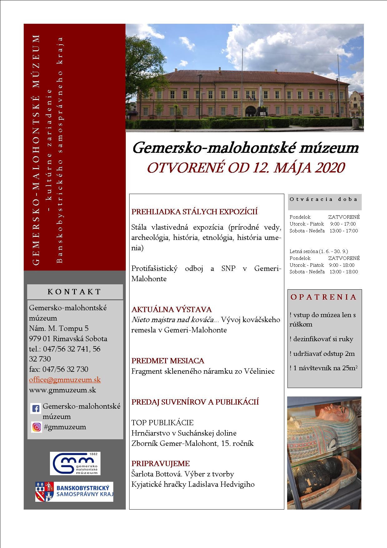 Koncom mája bude verejnosti sprístupnená výstava mladej výtvarníčky Šarloty Bottovej z Rimavskej Bani, ktorá v súčasnosti žije a tvorí v Hnúšti. Z jej tvorby uvidíte kresby portrétov významných slovenských i zahraničných osobností. V priebehu júna sprístupníme výstavu kyjatických hračiek z dielne Ladislava Hedvigiho z Rimavských Zalužian.