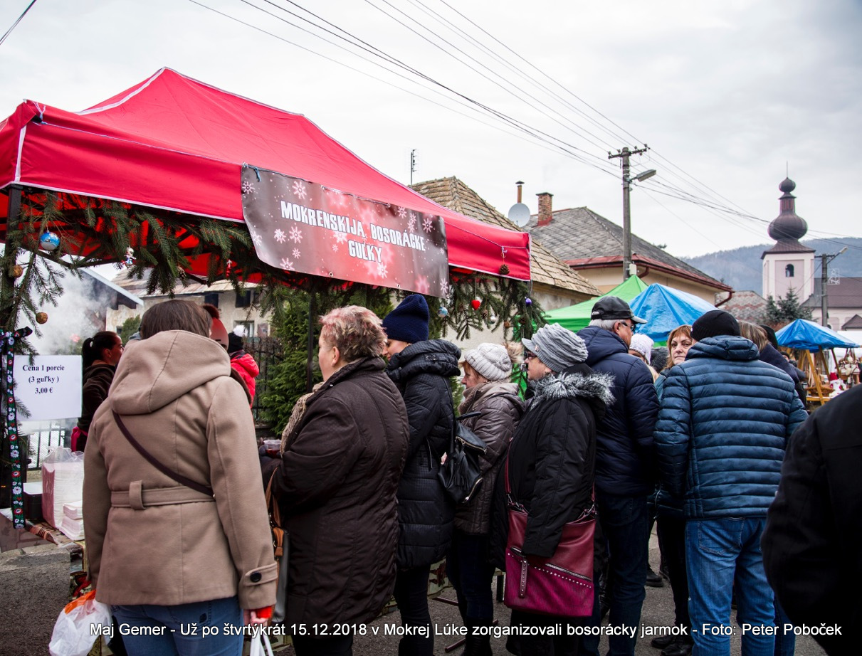 Babky korenárky, pekárky, kvetinárky a mäsiari si tiež prišli na svoje. Celým trhom rozvoniavala kapustnica, sladký punč, či pečená klobáska, podával sa i tradičný "mokrenský pudžing" a gemerské guľky. Veľkým lákadlom jarmoku je i kultúrny program. Tentokrát k nám zavítali folkloristi z Rejdovej. V nádherných krojoch nám predviedli tance a spevy z Rejdovskej doliny. Tradične nám zahrali Veselí chlapci z Horehronia a zaspievali Chlopi zo Šumiaca. Príjemnú atmosféru doplnili svojimi koledami aj deti z Mokrej Lúky.