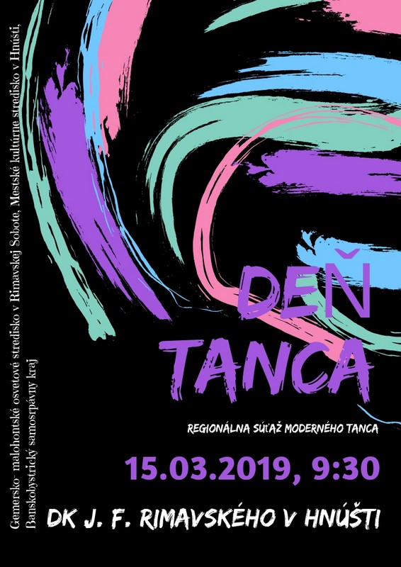 Dom kultúry v Hnúšti bude v piatok 15. marca od rána patriť tanečníkom. Pod príznačným názvom Deň tanca sa tu uskutoční regionálna súťaž moderného tanca.