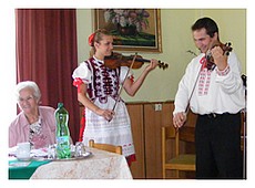 Matičné popoludnie dňa 27.9.2011 v Klube dôchodcov v Rožňave sa už stalo krásnou tradíciou. Naše staré mamy potešili svojím vystúpením súrodenci, ktorých práve stará mama aj rodičia podporujú v rozdávaní radosti iným. Rodina Hlaváčova z Gočova sa snaží zachovávať tradície ľudového spevu a pri prvých tónoch vycifrovaných na husliach v podaní najmladšej generácie Marienky a Ondríka sa na tvárach prítomných dôchodcov usadil úsmev a sem-tam aj slzička od dojatia.