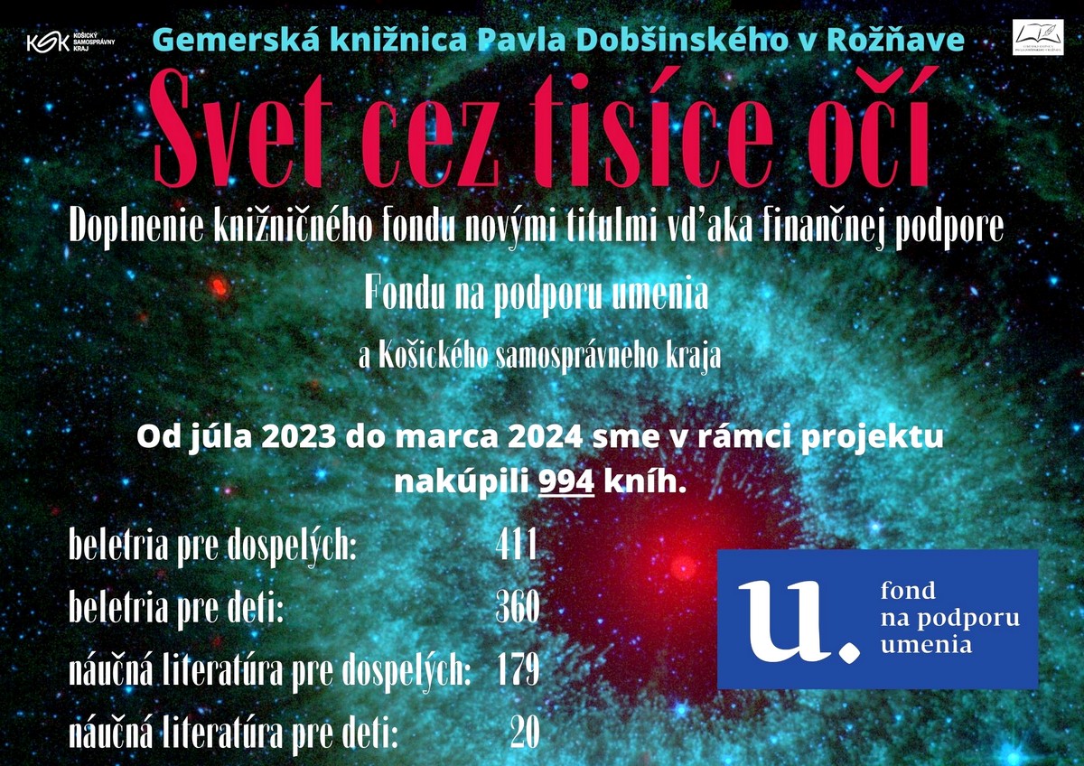 Čítanie má pre ľudstvo špecifické výhody v každom veku – od raného detstva až po starobu. Grant 10000,- € (spolufinancovanie 1179,16 €) z FPU pre Gemerskú knižnicu Pavla Dobšinského v Rožňave prispel k nákupu nových kníh pre všetky vekové kategórie.