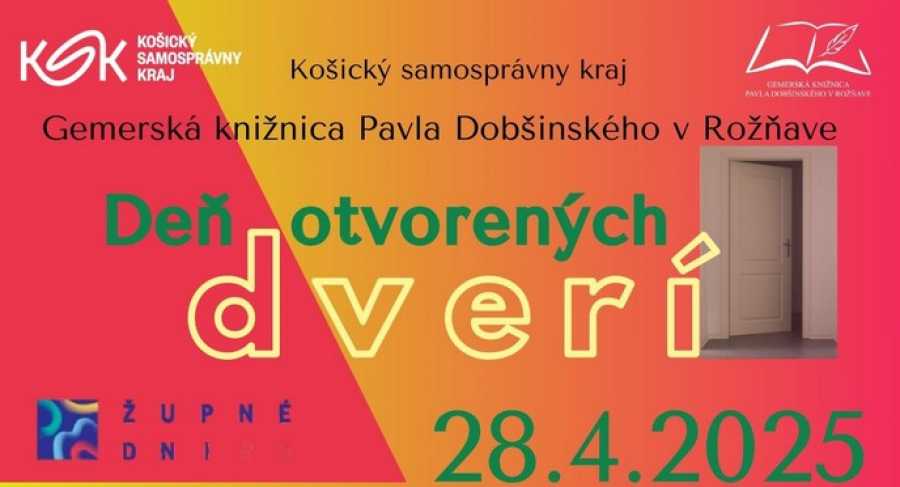 Pri príležitosti Župných dní v Košickom samosprávnom kraji srdečne pozývame širokú verejnosť na Deň otvorených dverí v Gemerskej knižnici Pavla Dobšinského v Rožňave, ktorý sa uskutoční v pondelok 28. apríla 2025 od 8:00 do 17:00 hod. Tento deň bude plný zábavy, vzdelávania a objavovania, a to nielen pre deti, ale aj dospelých.