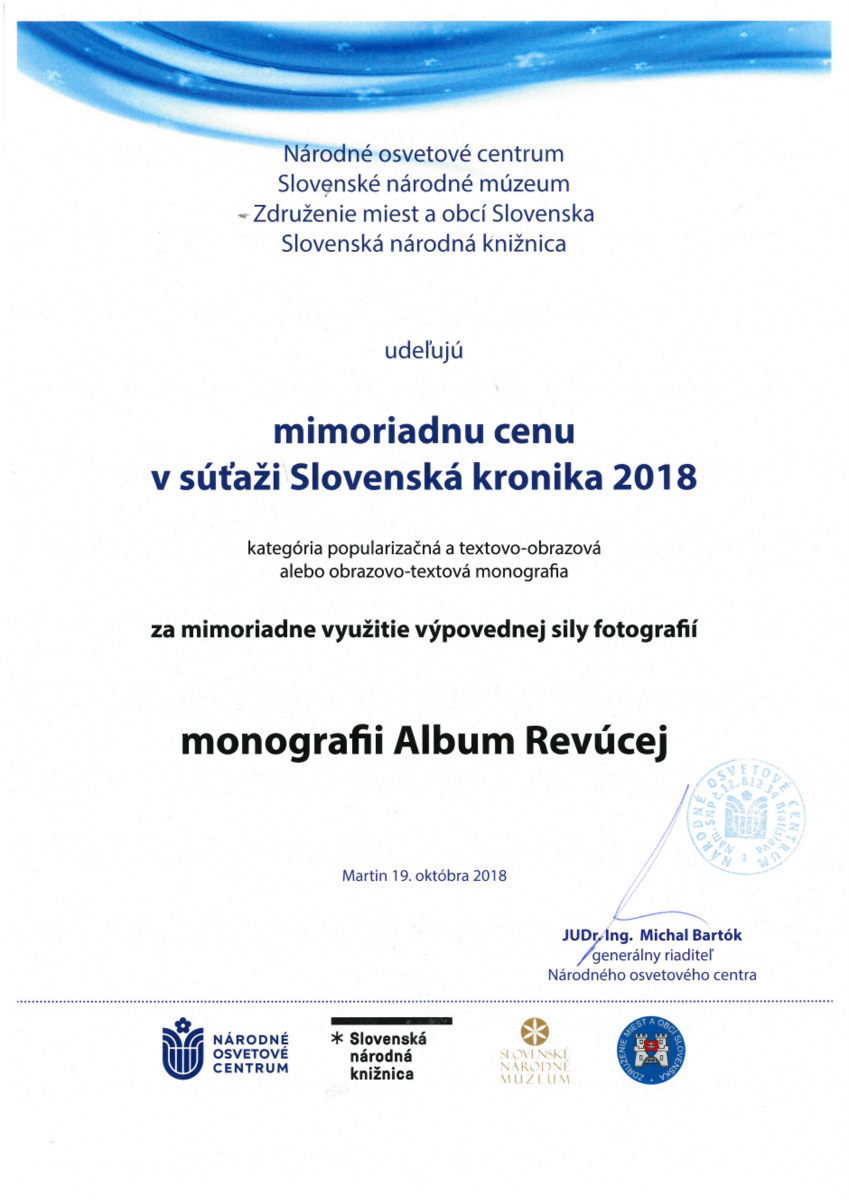 Mesto Revúca ako vydavateľ prihlásenej publikácie Dušana Dubovského Album Revúcej získal v tejto súťaži mimoriadnu cenu v kategórii popularizačná a textovo-obrazová alebo obrazovo-textová monografia za mimoriadne využitie výpovednej sily fotografií monografie Album Revúcej.