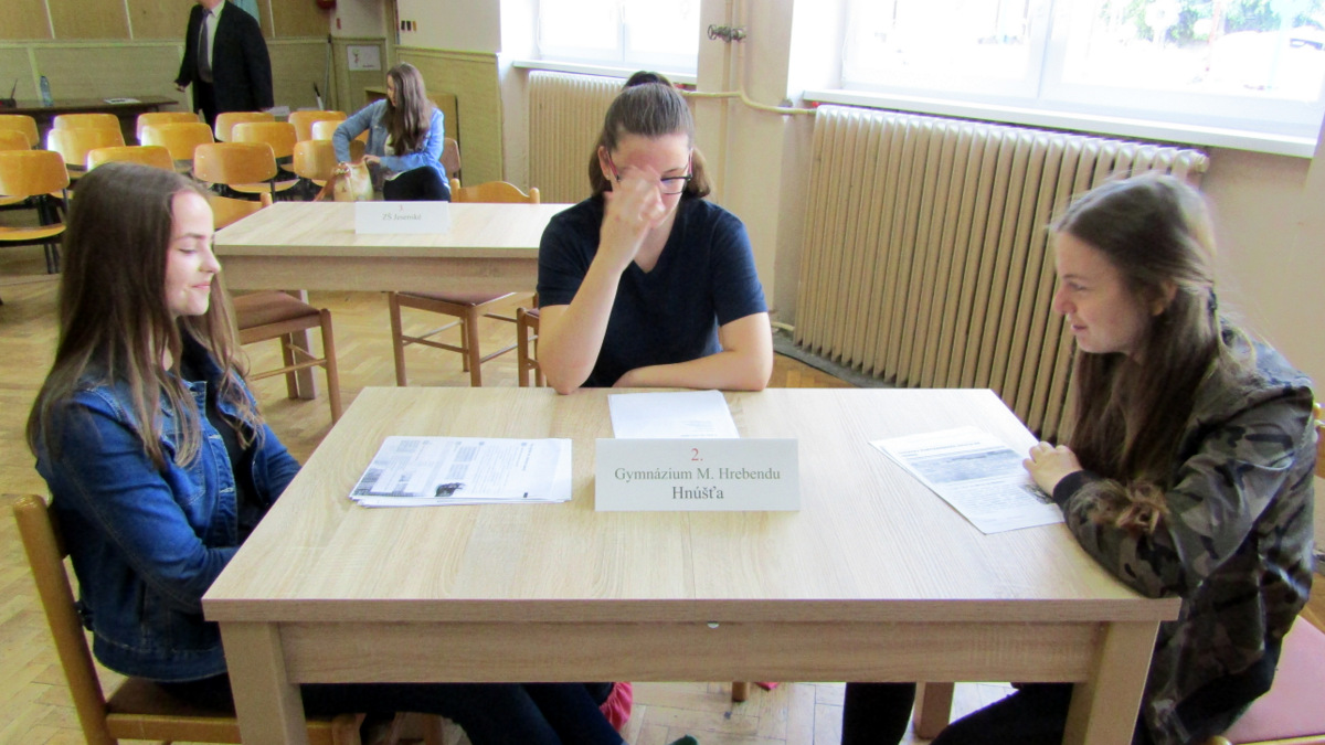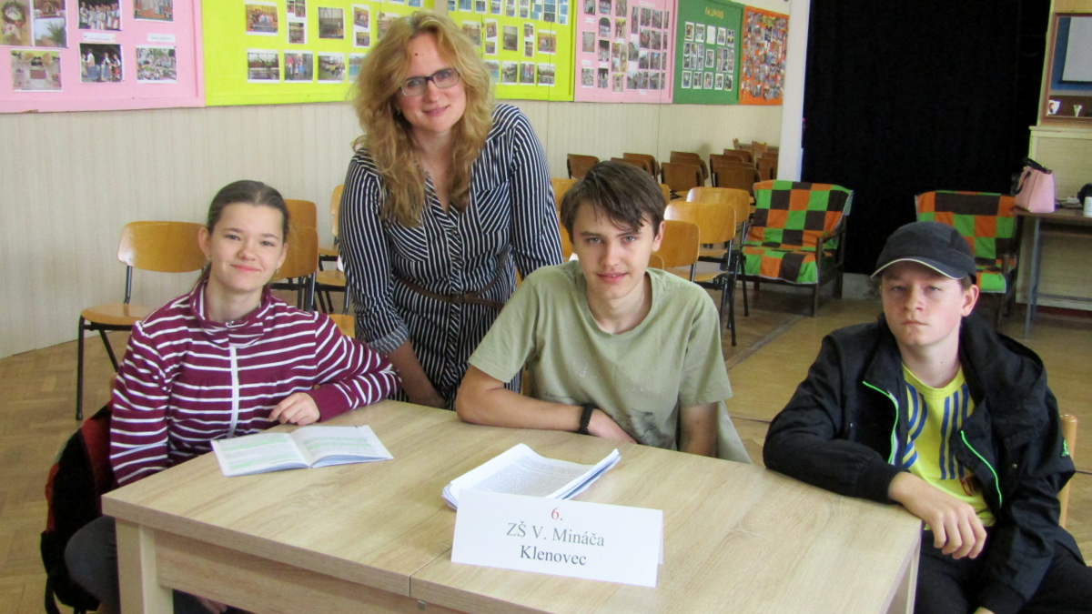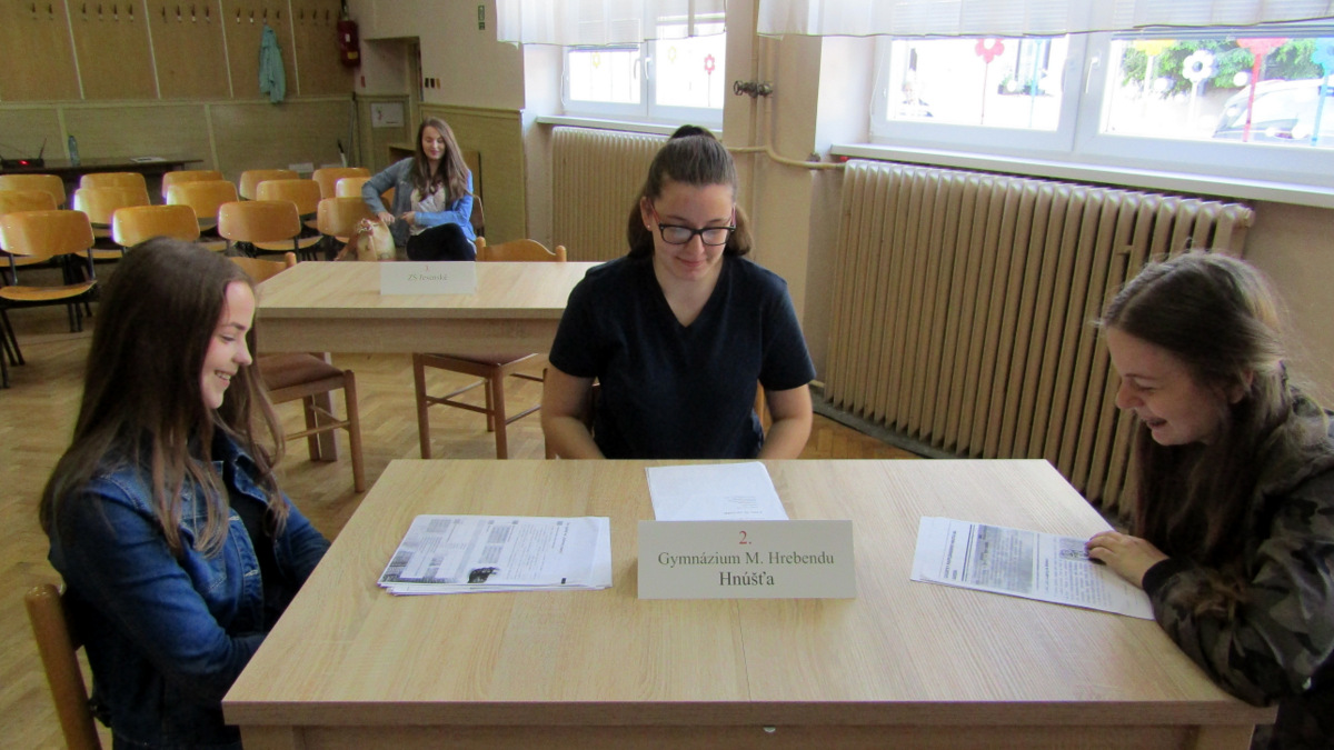 Gymnázium I. Kraska Rimavská Sobota: Adriana Krahulcová, Lucia Pockľanová, Lucia Vrábeľová, pod vedením Miloša Ďuriana, ZŠ S. Daxnera Rimavská Sobota: Bibiana Drugdová, Perla Sihelská, Aurel Karboník, pod vedením Mgr. Ivany Vrancovej, ZŠ P. J. Šafárika z Tornale, miestnej časti Šafárikovo: Alexandra Domonkošová, Lenka Kočová, Tibor Kamenský, pod vedením Mgr. Štefana Dudru, ZŠ V. Mináča Klenovec: Eva Hrušková, Sebastian Zvara, Lukáš Fábry, pod vedením Lucie Medveďovej. Nedostavilo sa družstvo ZŠ z Jesenského.