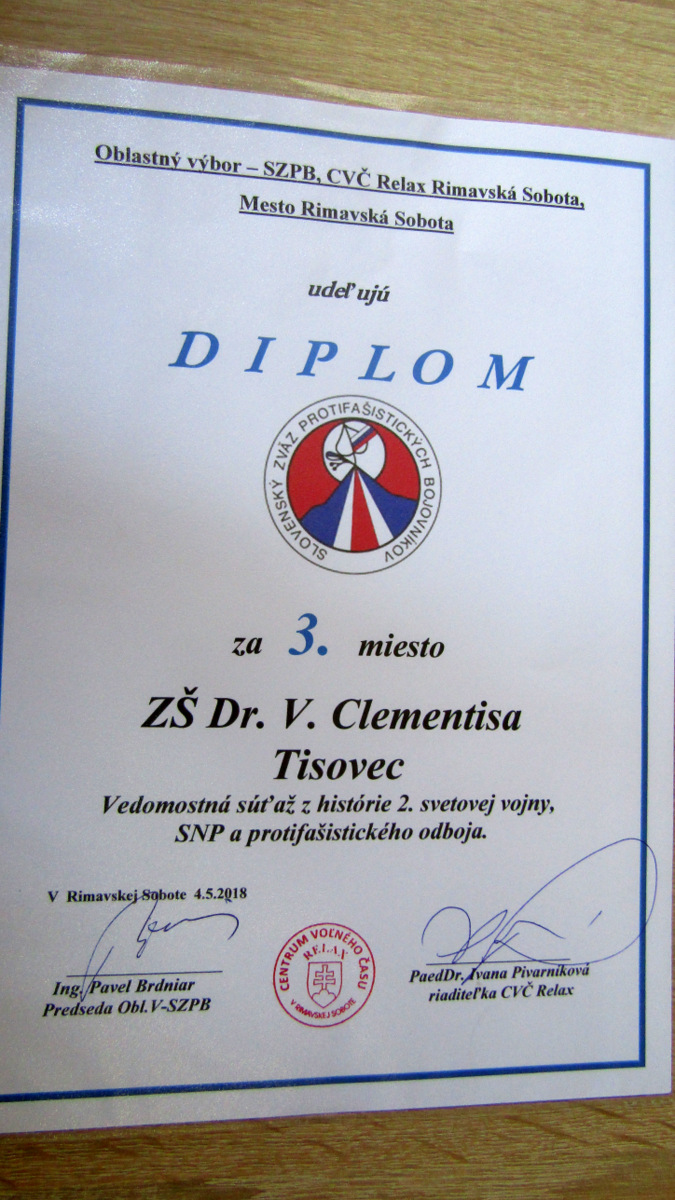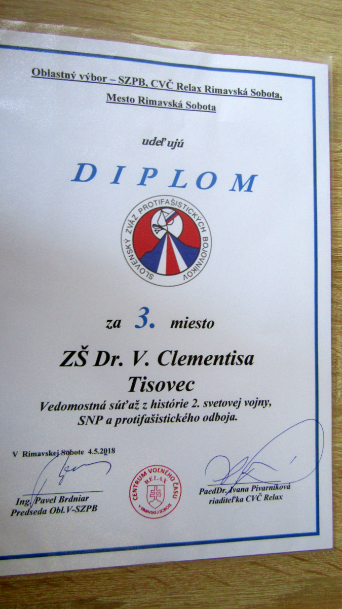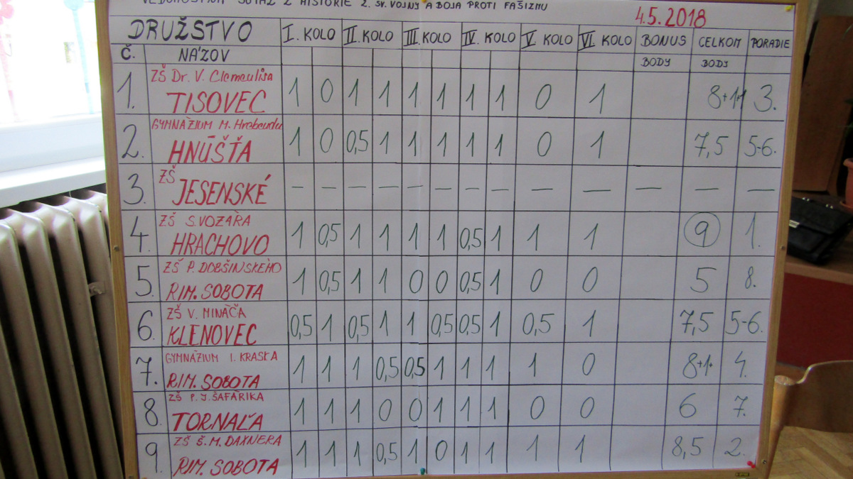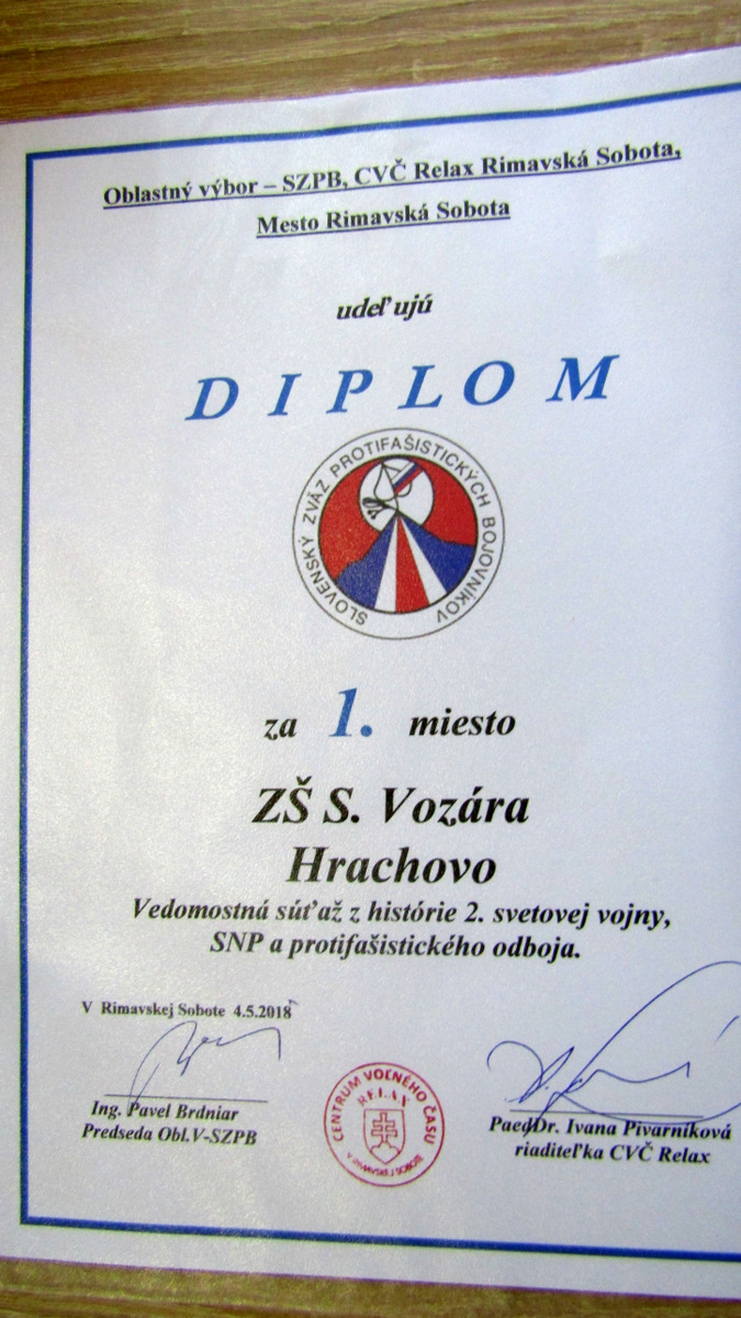 Víťazné družstvo ZŠ S. Vozára Hrachovo postupuje do pripravovanej celoštátnej vedomostnej súťaže. Po skončení súťaže tradične položilo veniec k pamätníku padlých vojakov Červenej armády pri oslobodzovaní Rimavskej Soboty ako prvé.