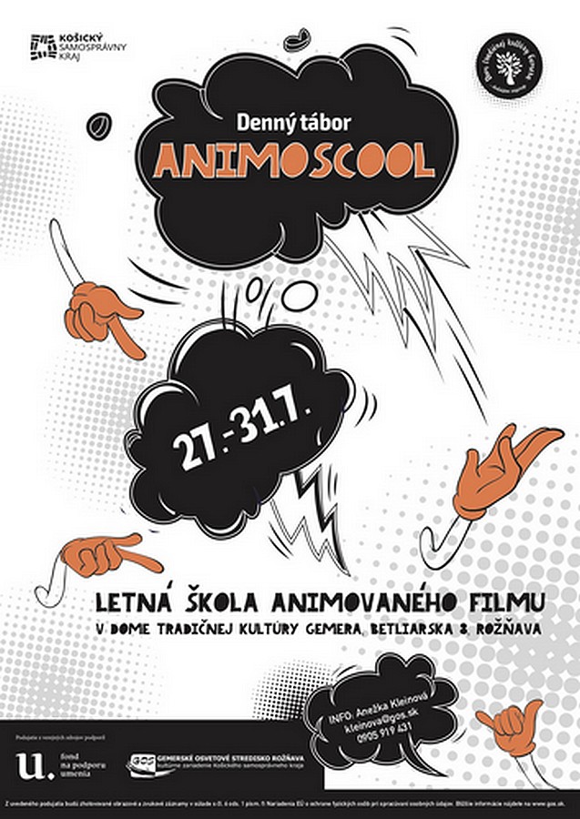 „Zaujímavou možnosťou je naučiť sa v tejto neformálnej a kreatívnej prázdninovej škole rôzne druhy animácie – plôškovú, kreslenú, plastelínovú, digitálnu, úpravu obrázkov v grafickom editore, nahrávanie ruchov a montáž filmu. Zábavnou a hravou formou už za týždeň vznikne spoločným úsilím všetkých účastníkov krátky animovaný film, ktorý uvedieme v premiére v piatok 31. júla 2020 v Dome tradičnej kultúry Gemera (Betliarska 8, Rožňava)," dodáva za GOS autorka projektu Anežka Kleinová.