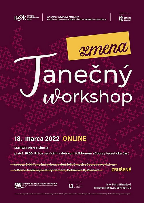 „Keďže nás tento rok čakajú regionálne kolá postupových súťaží detí, tak sme sa rozhodli naštartovať činnosť a motiváciu vo folklórnom hnutí aj prostredníctvom tanečného workshopu. Počas dvojdňového podujatia bude dostatočný priestor na konzultácie konkrétnych problémov, či revitalizáciu kolektívu po dlhodobej pauze,“ uvádza Mária Hlaváčová z Gemerského osvetového strediska. V prípade záujmu je potrebné nahlásiť svoju účasť.