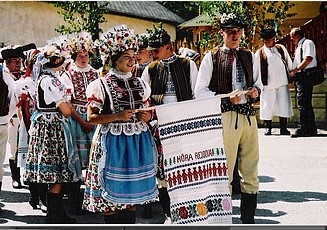 – Oca zmo zas mali, ked strihali ouce, tak šli ku každiemu košaru zaspievat pobožnu piesen: „Hospodin rači sam pastir muj biti“. No, tak tu piesen spievali, pri každom košare, štiri košare buli. A za to im dau každi gazda autak herst vouni. No a potem oni natkali si postavu s toho.