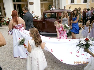 „Rada by som Vám ukázala ešte môj najnovší výtvor,“ ochotne dopĺňa informácie o sebe pani Turcsányiová. „Práve sme sa vrátili zo svadby, na ktorú som šila neveste svadobné šaty. Veľmi sa páčili nielen mne, ale i neveste. Len vlečka na nich merala tri metre. Pošlem vám môj originál,“ dodáva. „Ale to sa ja do nich nevmestím, načo mi ich pošlete?“ s úsmevom odpovedám našej krajčírke. „Ale to nie naozaj, myslela som, že vám ich pošlem len ako link,“ vysvetľuje s úsmevom.