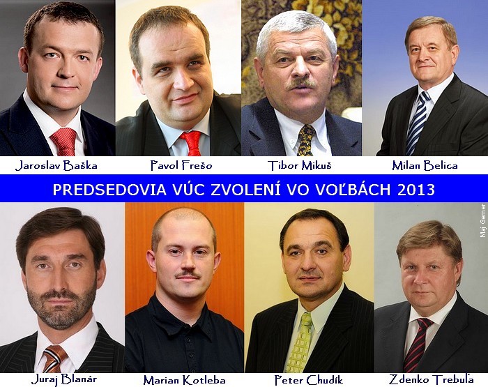 Výsledky druhého kola volieb do samosprávnych krajov na Slovensku, ktoré sa uskutočnilo v sobotu 23. novembra 2013, dali definitívnu podobu zloženia predsedov jednotlivých samosprávnych krajov. Voliči rozhodli, že k trom menám, ktoré dosiahli už v prvom kole 50 percentnú hranicu, v Žilinskom kraji – Juraj Blanár, v Trenčianskom kraji Jaroslav Baška a v Prešovskom kraji Peter Chudík, pribudli po druhom kole tieto mená: v Bratislavskom kraji voliči rozhodli, že staronovým predsedom bude na ďalšie volebné obdobie Pavol Frešo, v Trnavskom kraji Tibor Mikuš, v Nitrianskom kraji Milan Belica, v Banskobystrickom kraji Marian Kotleba a v Košickom kraji Zdenko Trebuľa. Z tejto pätice bude po prvýkrát vykonávať túto významnú funkciu Marian Kotleba, ktorý je najväčším prekvapením nielen tohto kola volieb, ale volieb do samosprávnych krajov v tomto roku vôbec.