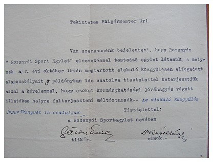 Nakoľko v Rožňave sa prejavovali záujmy aj o iné športy, tak sa 22. októbra 1910 zišiel prípravný výbor aj s pozvanými členmi do veľkej sály mestského domu, aby sa založil nový športový spolok. Schválené stanovy uvádzajú úradný názov tohto spolku ako Rožňavský športový spolok (Rozsnyói Sport Egylet) so sídlom v Rožňave. Za predsedu tohto spolku bol zvolený mešťanosta Rožňavy Dr. Jozef Pósch. Na zakladajúcom zhromaždení bolo schválené uznesenie o vytvorení týchto športových oddielov: oddiel telesnej výchovy a atletiky – vedúci Aurel Bartsch; oddiel korčuľovania – vedúci oddielu dr. Andrej Pasteiner; oddiel sánkarov – vedúci Mikuláš Komorossy; oddiel šermu – vedúci dr. Leopold Straussz.