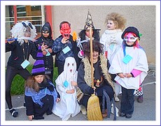 V neskorom popoludní sa dopravné ihrisko zmenilo na dvor hier a kúziel, kde sa zhromaždili rôzne strašidlá, ježibaby, múmie, duchovia a iné strašidelné masky. Staršie ježibaby (pani učiteľky), sprevádzali strašidielka rôznymi prekážkami a namáhavými úlohami, aby zistili ich silu a obratnosť.