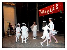 Čertík prišiel medzi zlé deti a robil tam neplechu, kým neprišiel za ním anjelik a všetky deti sa hneď polepšili. Neskôr predniesli veľa pekných básničiek a pesničiek.Scénku i literárne pásmo s deťmi nacvičila pani učiteľka Bc. Emília Simanová. Po ich vystúpení prekvapil deti Mikuláš v sprievode anjela a čerta. Pochválil ich za vystúpenie a za odmenu im rozdal darčeky v podobe sladkostí, čo inšpirovalo k prednesom i ostatné deti z hľadiska. Keď boli balíčky rozdané, vyzval prítomné deti do tanca. S radosťou si zapózoval pred objektívmi fotoaparátov a rozlúčil sa s nimi.