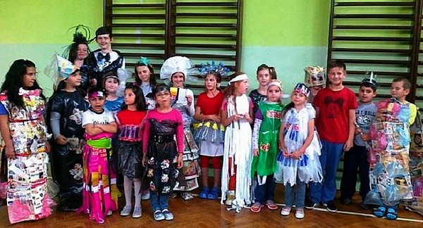 Videli sme novinovú princeznú, ktorá mala na hlave klobúk z plastových pohárov, veľmi vhodné proti nárazom, rytierov odetých do kombinovaného odpadu, bábiku oblečenú do Tesco tašiek, model vhodný aj na zimné obdobie. Igelitové vrece malo veľký úspech, lebo modely z tohto materiálu sa často opakovali i keď v rôznych farbách. Vhodné ako pancier nám predviedli modelky, ktoré mali oblečené sukničky a klobúky z PET fliaš. O letákové baletky a princezné sme nemali núdzu. Je to veľmi pestrý a módny materiál, vhodný na každú príležitosť. Takže, milí čitatelia, neváhajte a skúste si doma zhotoviť šaty z odpadového materiálu.