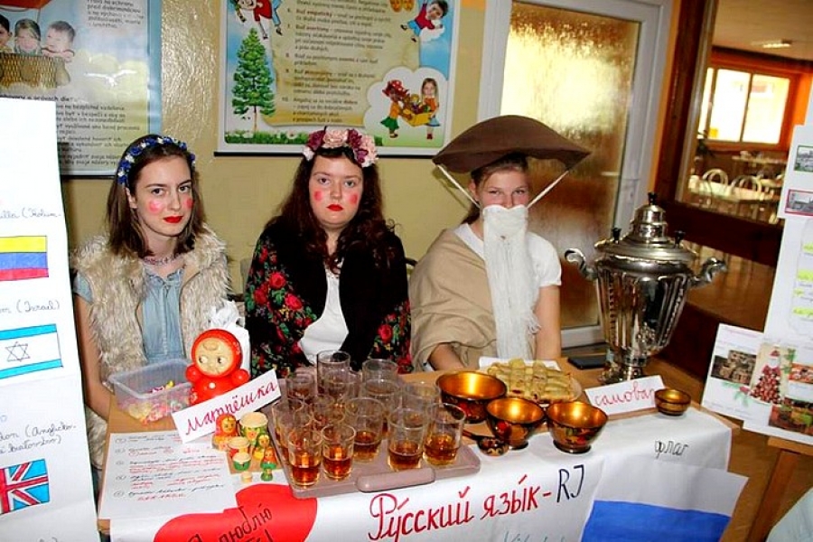 angličtinári ponúkali typický čaj s mliekom, ale aj bohaté anglické raňajky, v ruskom stánku „bľiny“ a lahodný čaj zo samovaru. Pri prezentácii poľštiny nemohli chýbať obľúbené krówky a s českým jazykom sme ponúkali neodolateľné moravské koláče. Pre žiakov boli v stánkoch prichystané interaktívne hádanky, pexesá, doplňovačky a skladačky, v počítačovej učebni žiaci „kahootovali“ zábavno-vedomostný test o jazykoch. Aj týmto spôsobom chceli učitelia – jazykári – motivovať žiakov k učeniu sa cudzích jazykov, ako aj poukázať na kultúrnu rôznorodosť a jazykovú rozmanitosť Európy. Ďakujeme všetkým žiakom, kolegom, ale aj rodičom za podporu a pomoc pri príprave tohto nezabudnuteľného dňa.