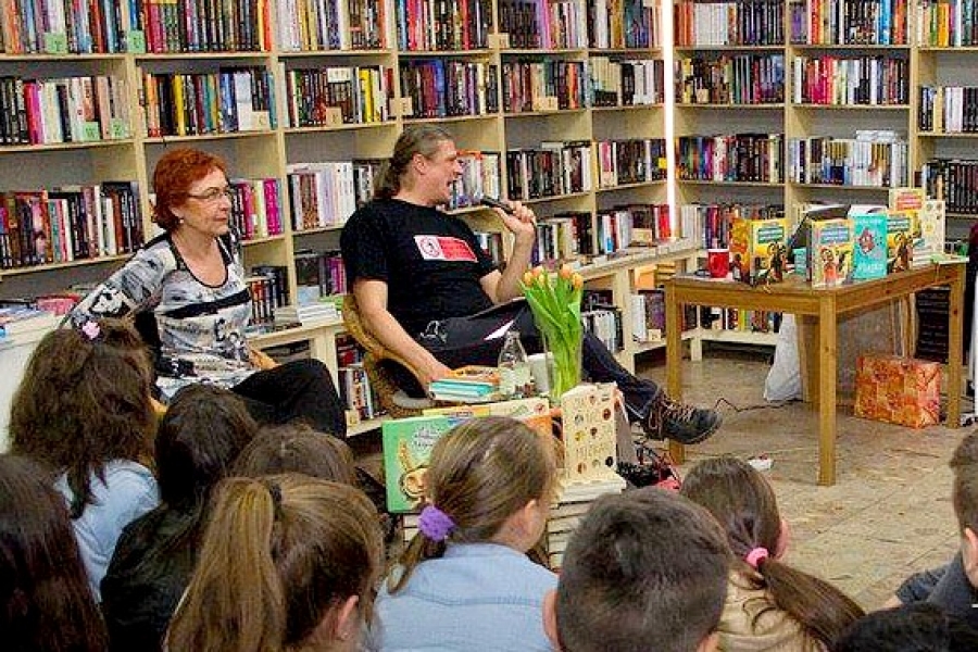 Branislav Jobus je spisovateľ z Vrbového, muzikant, šoumen, člen originálnych hudobných zoskupení (Vrbovskí víťazi, Karpatské chrbáty atď.) a každoročný moderátor festivalu Pohoda, s ktorým sa naši žiaci stretli 11. apríla 2016 v Kníhkupectve Knih Art. Hneď si ich získal svojim rozprávkovým spevom, priateľským prejavom, záujmom o sny a túžby detí a zábavným vrbovským nárečím.
