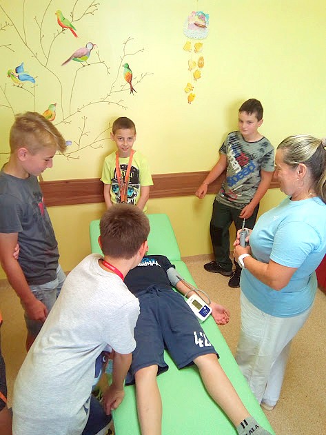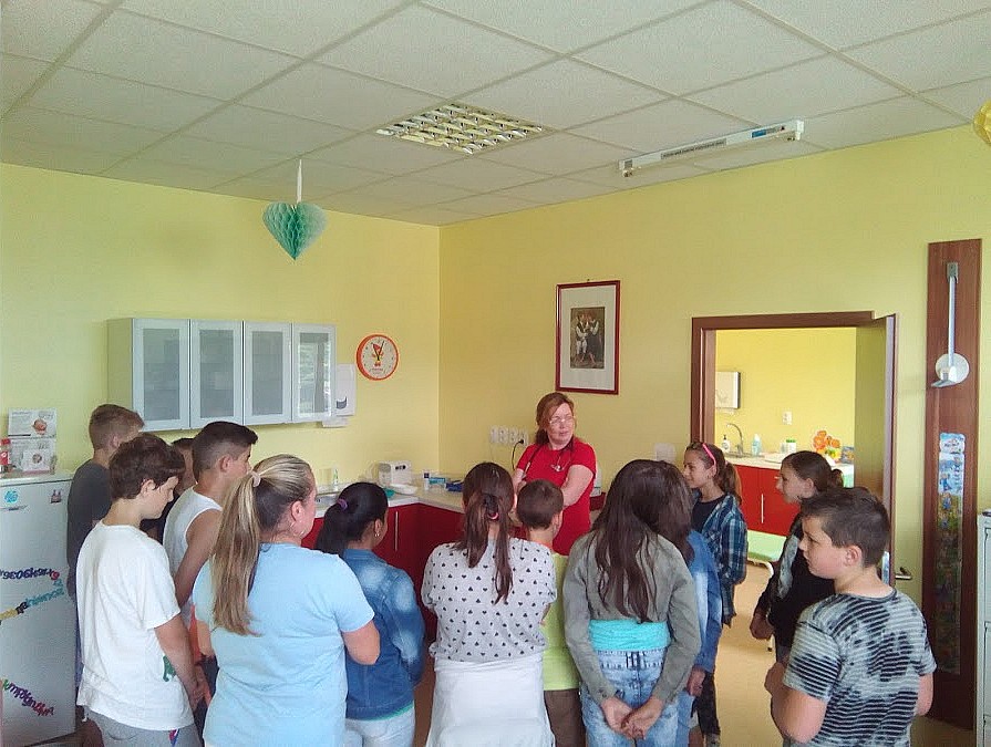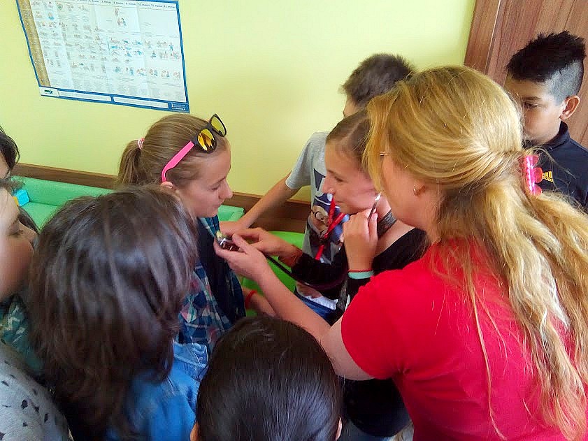 typu A. Pani doktorka aj so sestričkou ich potom pozvali do ambulancie, kde im porozprávali, ako prebieha preventívna prehliadka, čo všetko sa na nej zisťuje. Tiež sa zoznámili s prístrojom na meranie CRP, či skúmavkami a odbernými nádobkami s rôznym určením. Sestrička im ukázala ako sa meria tlak, dozvedeli sa, aký je správny tlak u detí a dospelých a mnohí si aj vyskúšali byť „pacientom“, ktorému merajú tlak. Žiakom sa veľmi páčila aj možnosť vyskúšať si fonendoskop. Tiež sa zahrali na starostlivých rodičov a naučili sa, ako je potrebné držať novorodenca, ako ho správne položiť na podložku, či odvážiť. Tým, ktorí nemali zaviazané šnúrky na topánkach pani doktorka vysvetlila, prečo je viazanie šnúrok napevno dôležité.