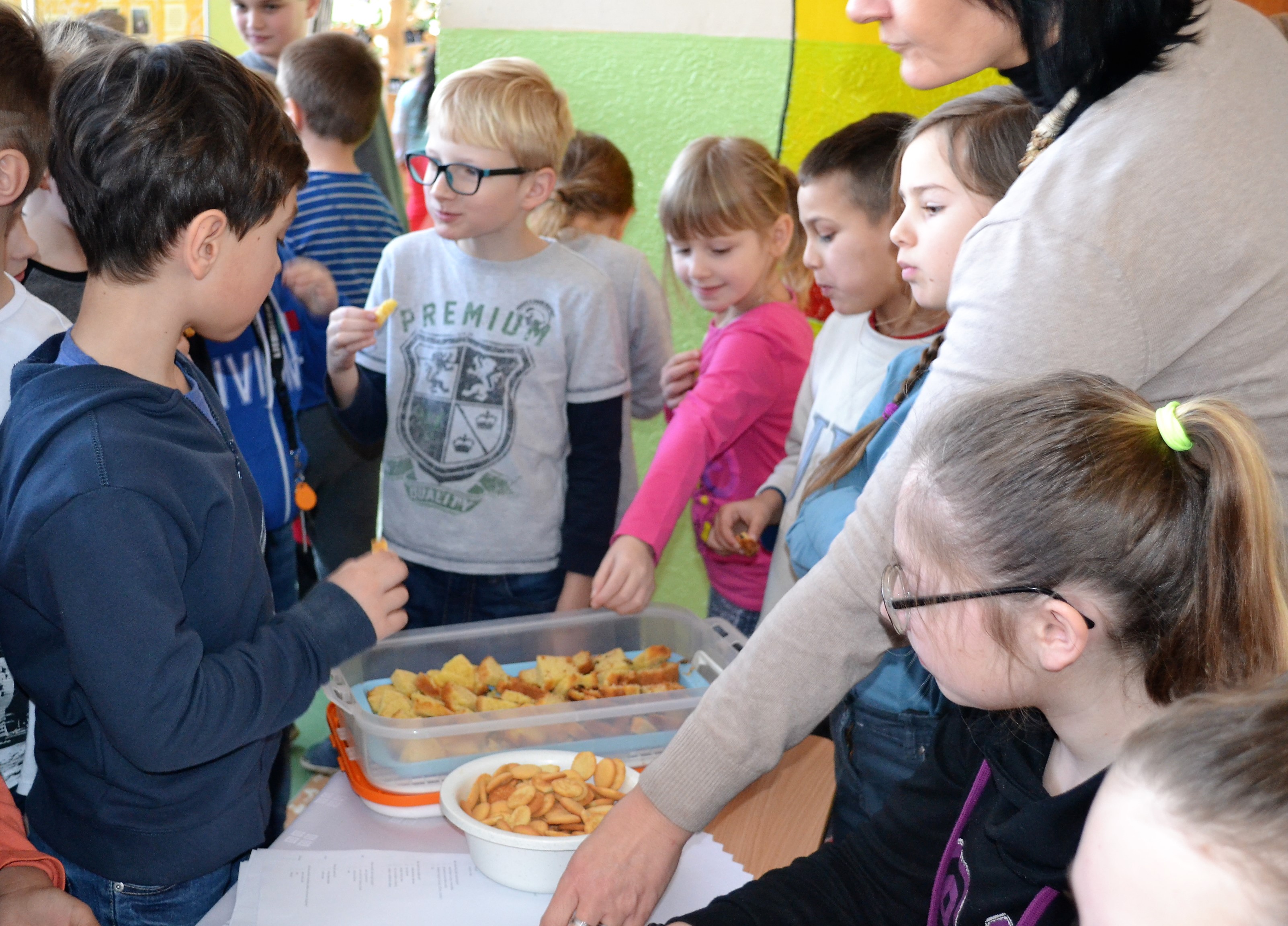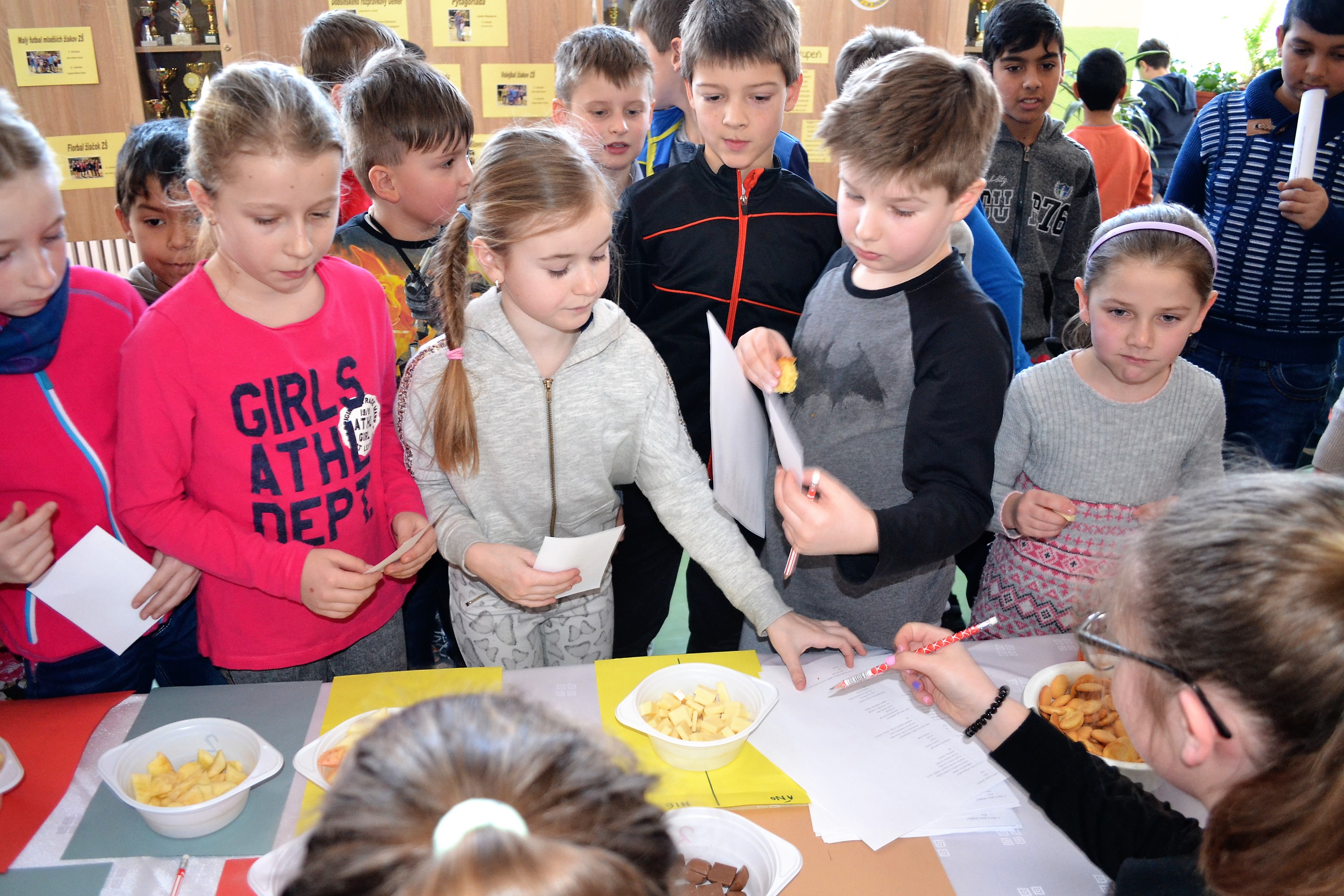 Tí väčší vypĺňali anketu o zdravom stravovacom štýle. Pani učiteľky Špaldová a Tokárová zvedavcom odpovedali na rôzne otázky, ktoré sa týkajú zásad správneho stravovania alebo stravovania pri bezlepkovej diéte. Pani učiteľka Špaldová vysvetlila deťom napríklad aj to, že používať vajcia z domáceho chovu a nie z obchodu má aj veľký ekologický význam.