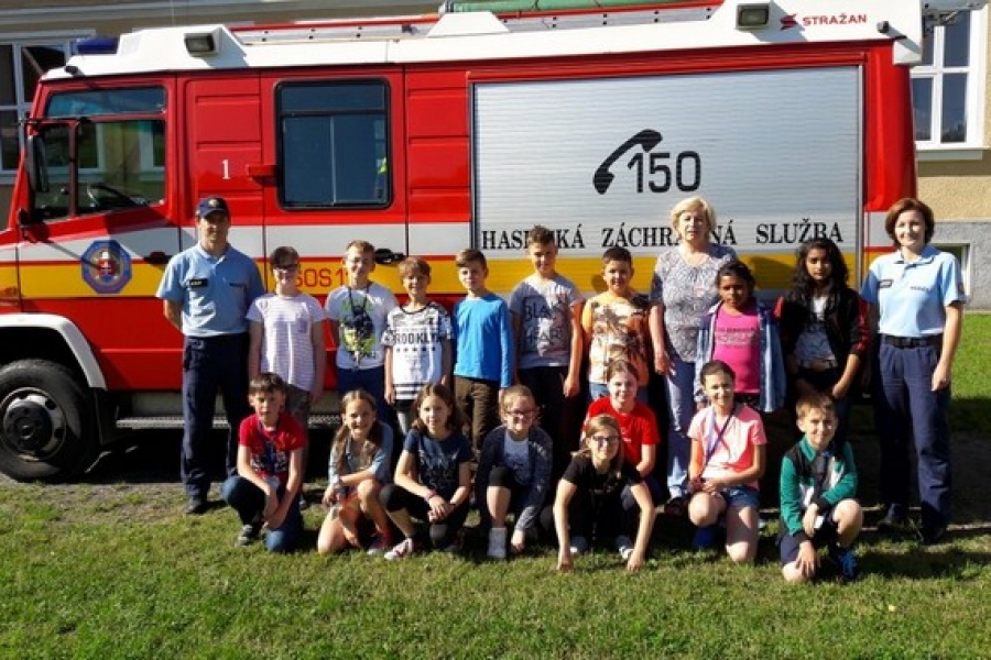 Druhú časť tvorila praktická ukážka spojená s vykonaním evakuácie z ohrozených priestorov školy a následne s ukážkou automobilovej techniky - automobil hasičskej záchrannej služby 1A MB VARIO v areáli školy s adekvátnymi pomôckami k danej téme ako napr. zásahový odev, prilba, rukavice, zásahová obuv, autonómny dýchací prístroj, prenosný hasiaci prístroj atď.