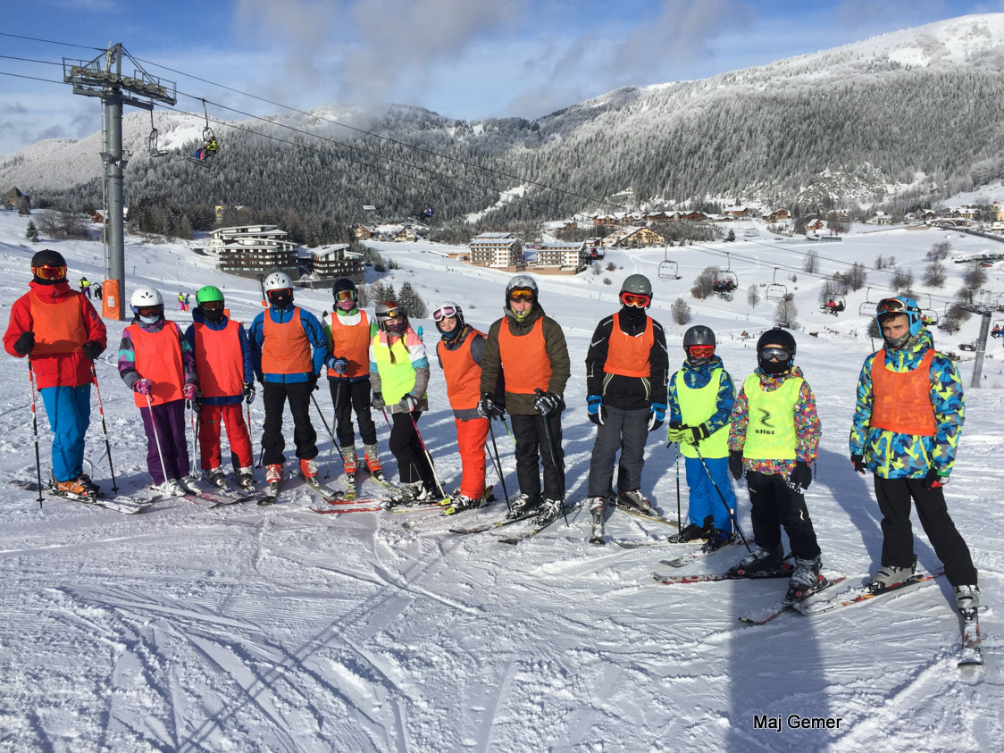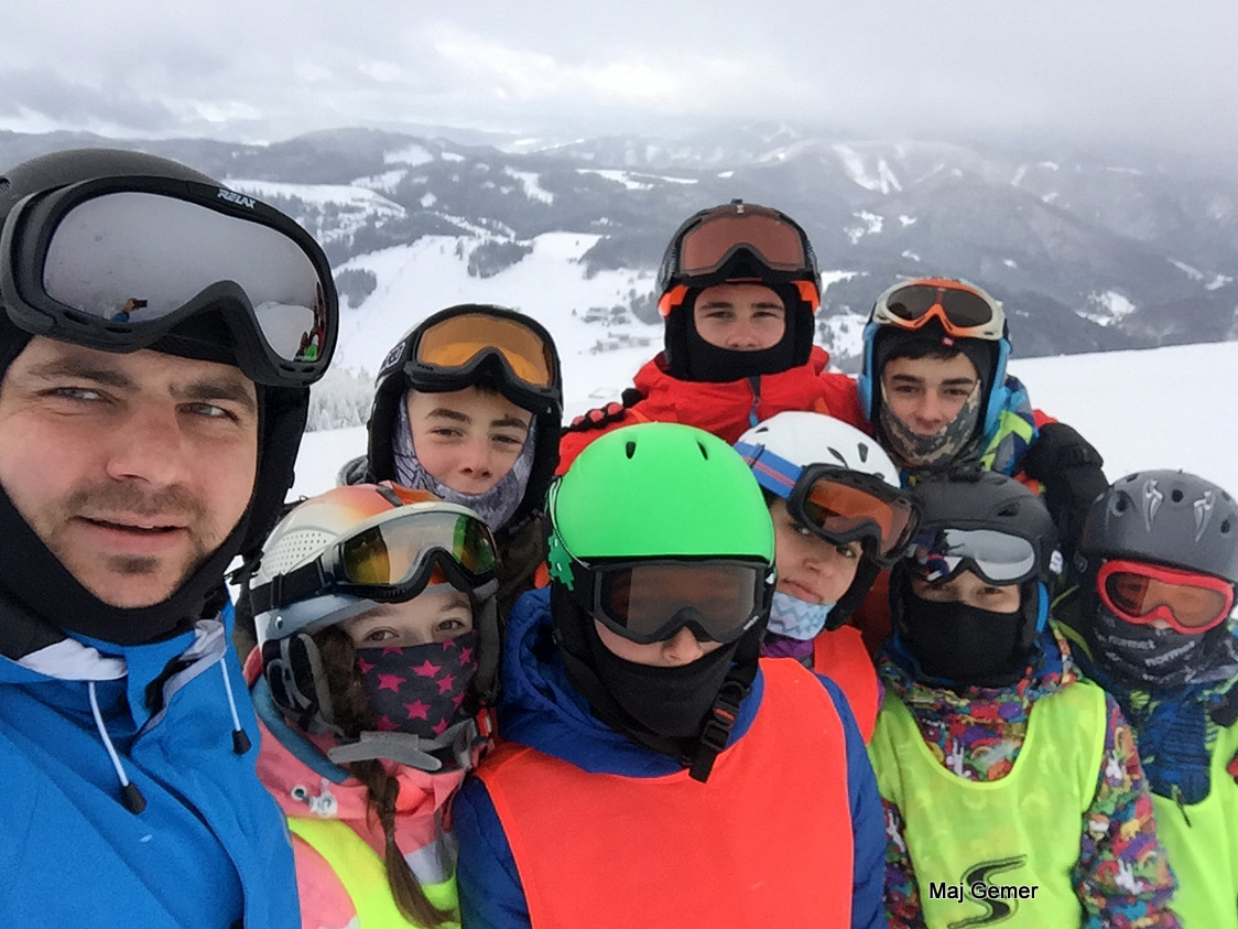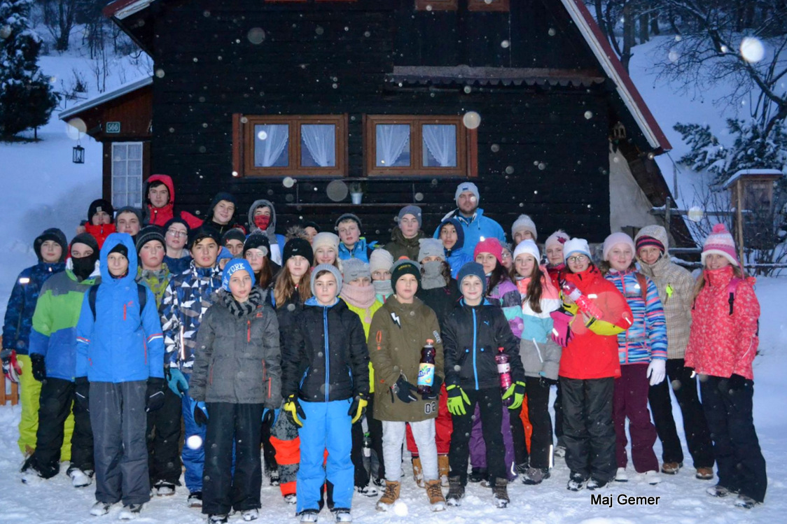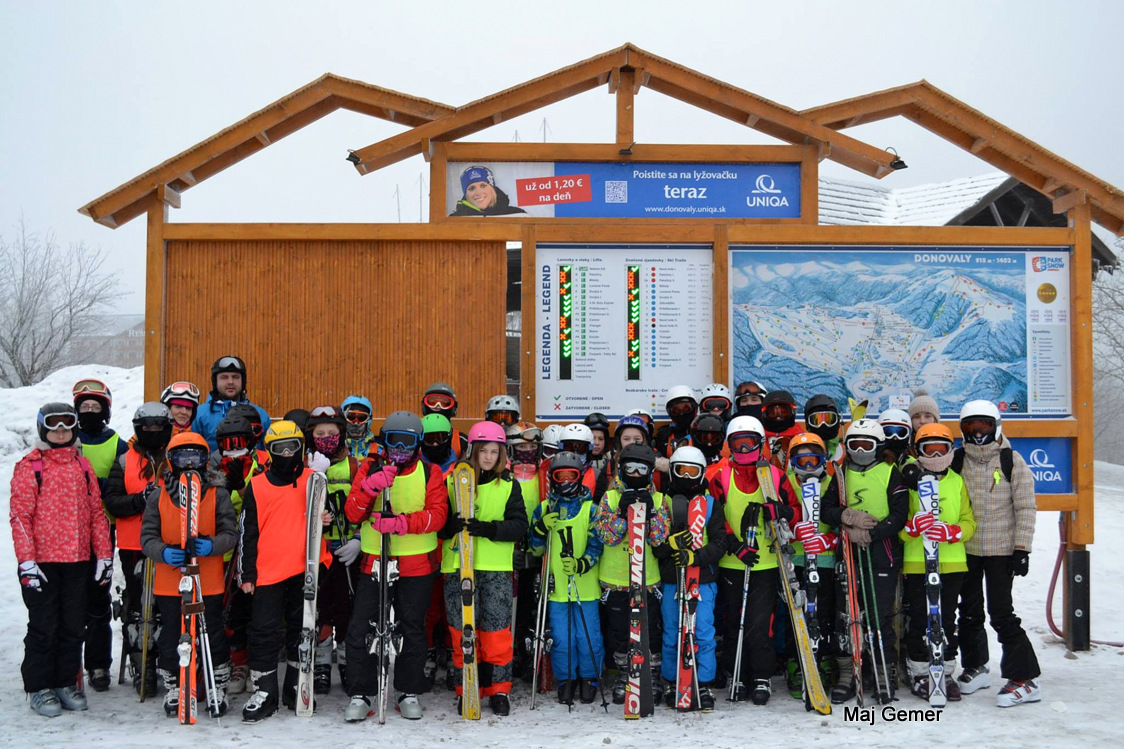 V pondelok sme sa pred školou zišli, / na lyžiarsky kurz sme všetci išli.// V autobuse samý smiech, / „na Donovaloch padá sneh.“ // Na chatu sme dorazili, / kufre sme hneď vybalili. // Spolu sme sa lyžovali, / aj sme trochu popadali. // Niektorí aj jumpovali, /  učiteľky nám pomáhali. // Modrinky sme za tým mali, / no večer sme sa už guľovali. // Začiatočníci sa zlepšujú, / nový kopec už zlyžujú. / Náročný svah nás už láka, / tešíme sa, čo nás čaká. // Profíci sa dočkali, / z Novej hole sa spustili. // Večerné lyžovanie sa nám najviac páčilo, / na lanovke nás to potme bavilo. // Keď sme večer vošli do izby, / písali sme tieto básničky. // Počasie nám celkom prialo, / všetkým nám to lyžovalo.