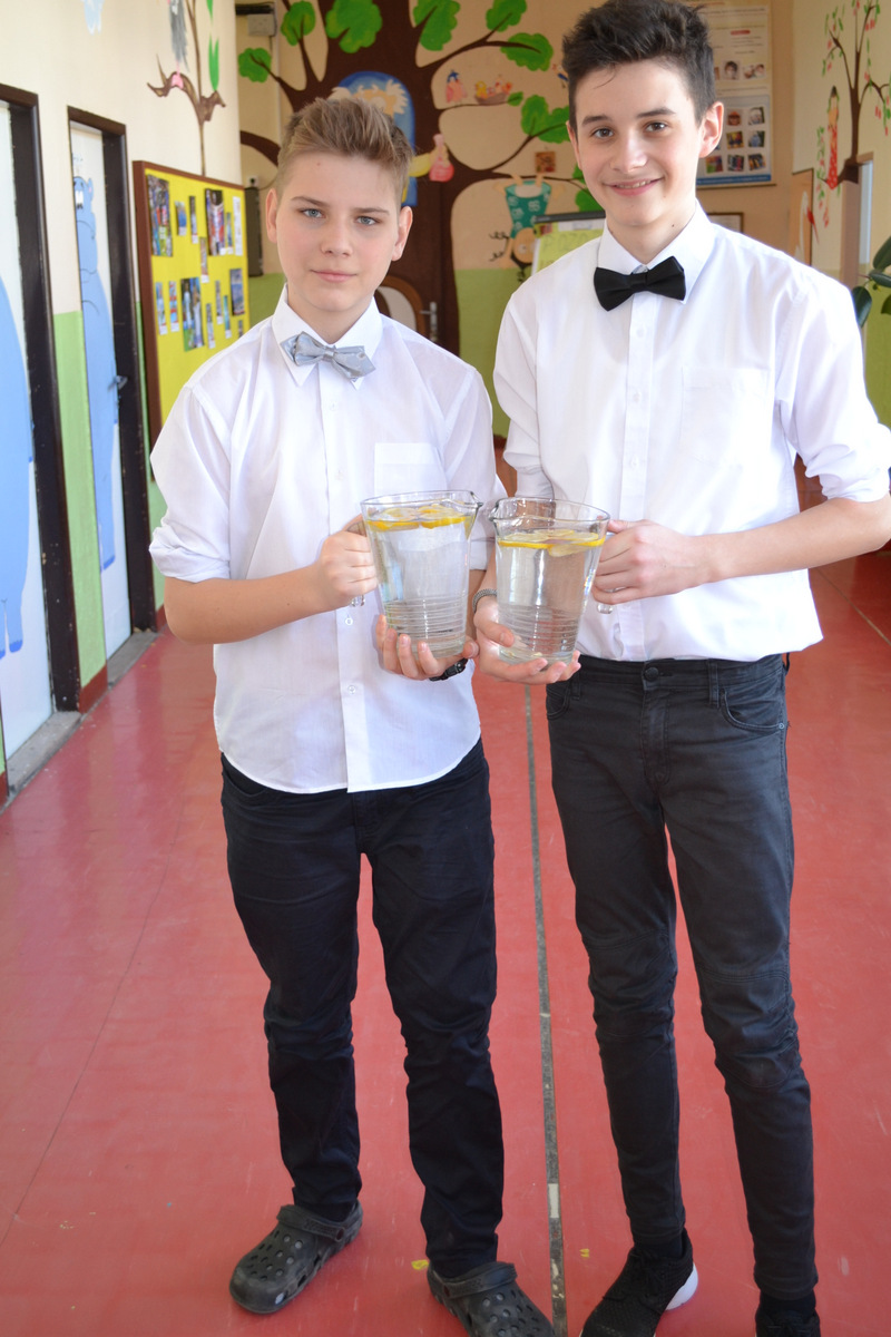 A nezabudli ani na učiteľov, ktorí si tiež s chuťou pripili na zdravie čistou vodou. Vďaka tejto aktivite sa pitná voda dostane aj k tým deťom, ktoré by si ju dobrovoľne nevybrali. Oslovených bolo 2 400 škôl, avšak pozitívnu spätnú väzbu dalo len 140 a medzi nimi aj naša škola. Nasvedčuje to tomu, že téma pitnej vody je stále spoločensky nedocenená. My sme však radi, že sme sa zaradili medzi tie aktívne a progresívne školy, ktoré tento problém nepodceňujú, ale spoznávajú. Veď nové materiály o tejto problematike potešia nielen pedagógov, ale hlavne našich žiakov.