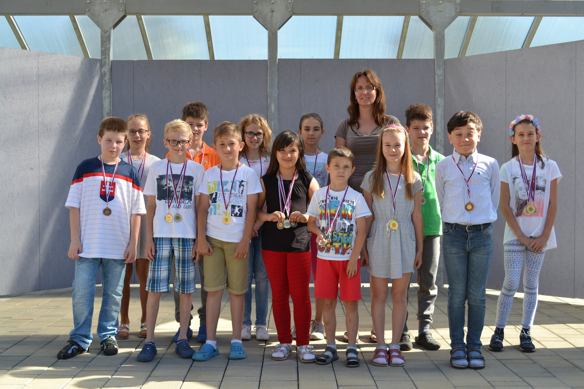 disciplínach sme sa znova zhromaždili na školskom dvore, kde sme tento pekný deň vyhodnotili. Niektorí šťastní, iní trochu smutní s napätím očakávali vyhlásenie výsledkov. Súťažiaci, ktorí obsadili prvé tri miesta, boli odmenení krásnymi diplomami a medailami. Všetkým víťazom blahoželáme a tešíme sa na stretnutie opäť o rok.