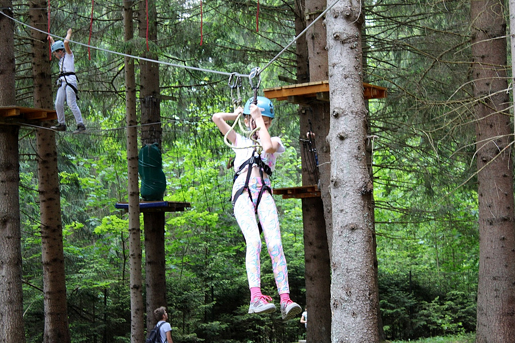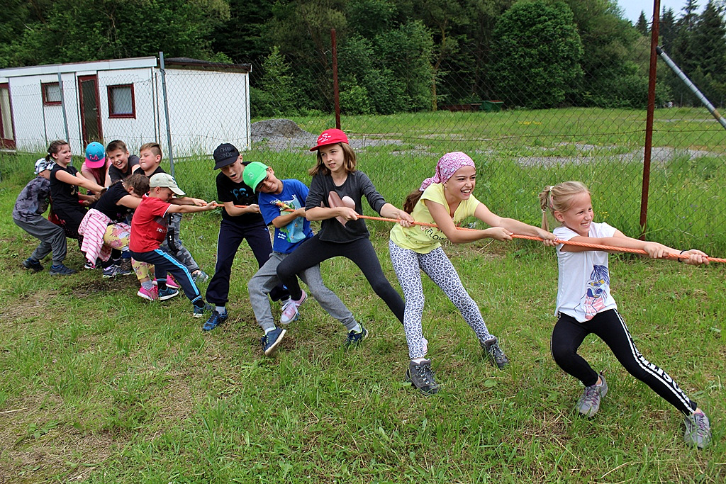 s naším týždenným programom a dlhá prechádzka smerom k miestnemu wellnesu, kde sme sa dosýta vyšantili v bazéne. Na druhý deň v utorok nás čakala cesta do Čierneho Balogu. Boli sme veľmi nedočkaví, pretože sme sa tešili na železničku. Počas cesty vlakom sme mohli sledovať staré stroje železnice a obdivovať skanzen. Potom nás čakal turistický chodník v krásnej prírode Vydrovskej doliny, kde sme s úžasom pozorovali diviaky, mravce i srnky. Nasledujúci deň sme sa zúčastnili športových aktivít, ktoré si pre nás pripravili naše pani učiteľky. Súťažilo sa v preťahovaní lanom a taktiež v rozličných disciplínach zameraných na rýchlosť a vytrvalosť. V ten istý deň nás čakala prehliadka Bystrianskej jaskyne, kde sme sledovali stopu Jetiho i čerta. Poobede si pre nás pani učiteľky pripravili kvíz pozostávajúci z otázok týkajúcich sa Vydrovskej doliny i našich ostatných výletov. V ďalšie dni sme navštívili aj lezeckú dráhu Tarzánia, kde si každý z nás mohol preveriť svoju odvahu a vytrvalosť. Po ceste naspäť nás zastihla búrka, premokli sme do nitky, ale boli sme šťastní, pretože sme mali za sebou celú kopu zážitkov.