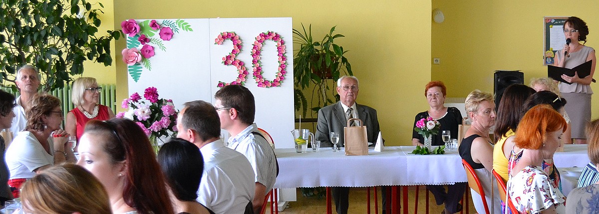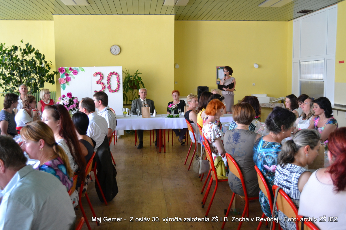Divadlom sa u Zocháčov školský deň neskončil, v treťom bloku divadielok už medzi nás pribudli aj hostia, ktorí prijali pozvanie na oslavy 30.výročia založenia školy. Bývalí riaditelia našej školy, bývalí zamestnanci, kolegovia z iných škôl, sponzori a zástupcovia mesta spolu s pani primátorkou sa na pár hodín stali súčasťou nášho veľkého dňa.