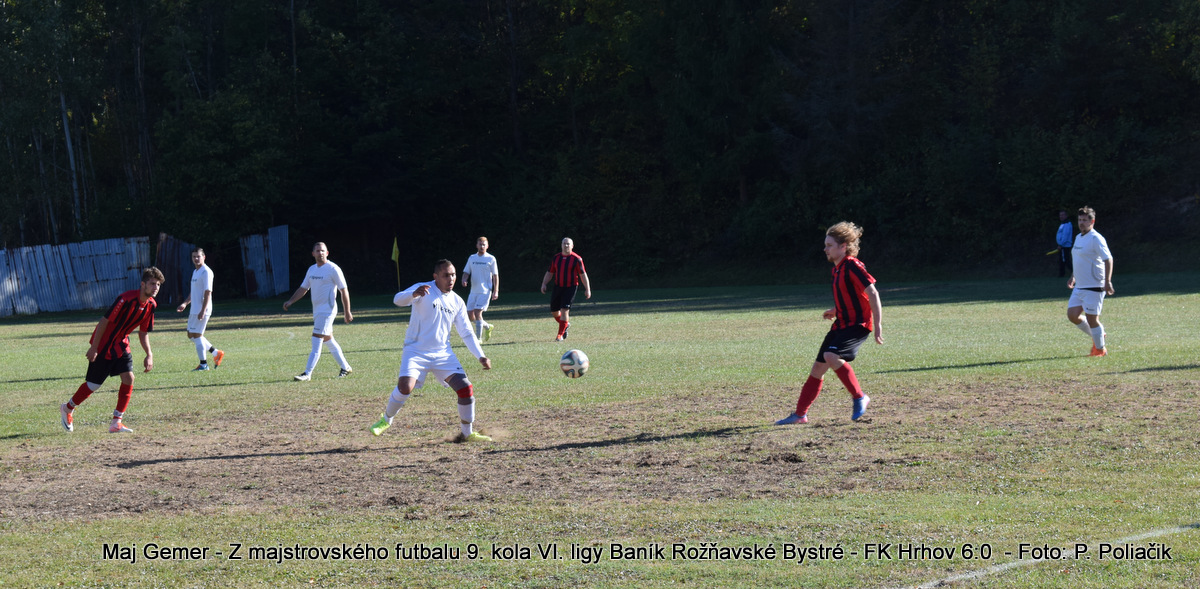 ZK Dlhá Ves – Gemtex Rudná 0:1 (0:1), G: O. Vysoký (z 11m), ŽK: M. Dusza, A. Labina, V. Kováč - Cs. Óvary, Z. Molčan, P. Kontra, R: D. Poťmák - L. Gyenes, L. Šalamon. Div.: FK Plešivec - OFK Vyšná Slaná 1:1 (1:0), G: T. Čeh - T. Čech (vlastný), ŽK: A. Szaniszló, Z. Laven - A. Gallo. R: V. Martinko – M. Šimčák, DS: Š. Bodnár, Div.: 50. Jednota Krásnohorská Dlhá Lúka - MFK Dobšiná 2:0 (1:0), G: J. Čižmár, A. Rigó, ŽK: K. Albert, M. Tokarčík, R: R. Klinko – G. Rási, DS: J. Bobrík. Div.: 80. TABUĽKA VI. LIGY PO 9. KOLE