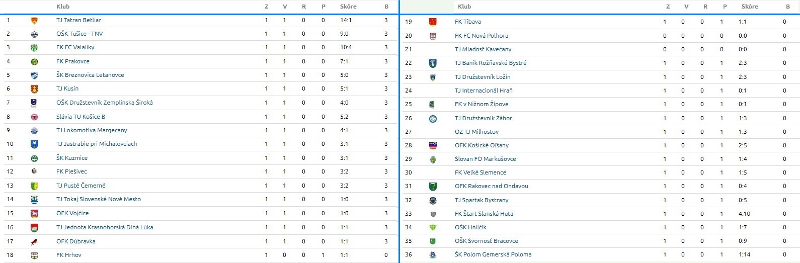 TABUĽKA KFL - ObFZ - PO 1. KOLE
