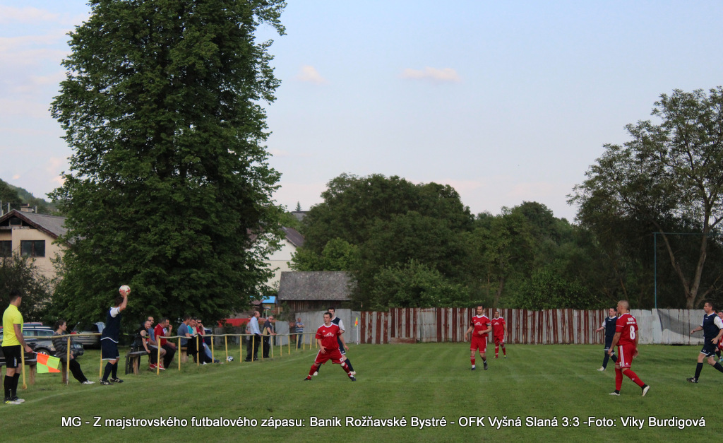 Baník Rožňavské Bystré – OFK Vyšná Slaná 3:3 (2:0). G: J. Lipták-Giba 2, P. Kubej – F. Gallo, M. Gallo, P. Zabrel. ŽK: J. Tomi, F. Čapo 2 =ČK - F. Gallo, M. Gallo. R: M. Uharček - L. Gyenes, T. Gyenes, DS: P. Béreš. Div.: 100.