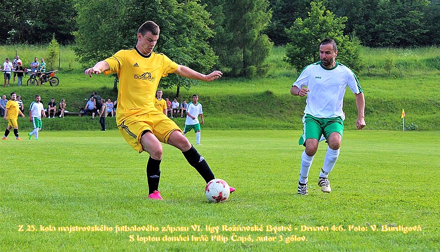 Na góly bohatý zápas videli početní diváci v Bystrom. Strelecky to najlepšie vyšlo dvom hráčom - Filipovi Čapovi z domácich a Jánovi Kovácsovi z Drnavy. Obaja strelili po tri góly. Viac strelcov mali však hostia, a preto aj tri body z tohto zápasu putujú do Drnavy.