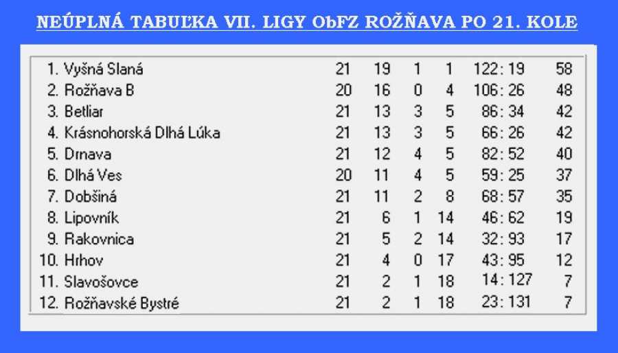 NEÚPLNÁ TABUĽKA PO 21. KOLE: