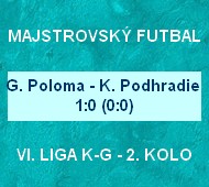 V prvom domácom zápase nového futbalového ročníka VI. ligy košicko - gemerskej skupiny privítala Gemerská Poloma súpera z Krásnohorského Podhradia. V základnej zostave došlo k zmenám. Zápas otvorila rozohrávka hostí. Domáce mužstvo išlo do zápasu s cieľom zvíťaziť a nadviazať na výkon z Geče. Od úvodných minút si domáci vytvorili prevahu. Gól sa im streliť nepodarilo. Po faule na domáceho hráča mali domáci výhodu priameho kopu. Strela Chochola po prihrávke Mil. Galla bola nepresná. Z troch striel domáci neprekonali súperovho brankára Harhovského. Potom prišla fáza zápasu, keď domáci už nemali takú výraznú prevahu. Napriek tomu si vytvorili ďalšie šance. Hlavičku Fecka chytil brankár, hlavičku iného hráča z pravej
