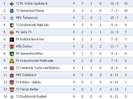 Ďalšie výsledky mužstiev horného Gemera - 4. kolo: Betliar - Gemerská Hôrka 3:3, Košická Nová Ves - Dobšiná 3:1, Geča - Krásnohorské Podhradie 4:0.