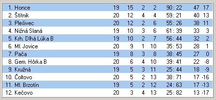 preukázali ako veľmi štedrí hráči, keď ich brankári si odviezli zo súperových ihrísk až 20 gólov! Konečne získali po niekoľkých neúrodných kolách tri body aj Čoltovčania. Tí v zápase s mladými hráčmi béčka Krásnohorskej Dlhej Lúky najprv prehrávali 0:1, ale postupne prebrali inicatívu a ujali sa v zápase vedenia až na 3:1. Za 5 minút ale dokázali mladí Dlholúčania tento stav vyrovnať. V dobrom svetle sa ukázal najmä ich brankár, ktorý zneškodnil niekoľko čistých gólových šancí domácich. Nakoniec o zápase sa rozhodlo asi 10 minút pred koncom, keď víťazný gól zaznamenal Baláž, ktorý prešiel celou obranou a sám pred brankárom hostí namieril do vinkla brány. Kuriózny bol druhý gól hostí, keď najprv hlavný rozhodca gól neuznal, ale potom na pokyn postranného si osvojil jeho názor, že lopta bola za bránkovou čiarou celým svojím objemom.
