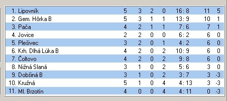 Výsledky II. triedy 5. kolo: Plešivec – Čoltovo 2:0, Jovice – Dobšiná 4:1, Gem. Hôrka B – Nižná Slaná 4:2, Lipovník – Ml. Brzotín 2:0, Kružná – Pača 0:1.