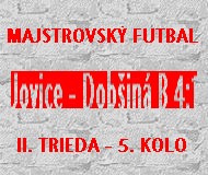 Jovice - Dobšiná B" 4:1 (2:1). Za príjemného počasia domáci vzhľadom na zostavu s jednoznačnou taktikou chceli pokoriť nováčika II. triedy a získať v 5. kole 3 body do tabuľky. Ale radosť im pokazil už v piatej minute hráč hostí Barnák, keď nádhernou strelou vymietol pavučinu domácej brány. Brankár nemal žiadnu šancu. Paráda. Hneď po otvorení hry kanonier domácich Grecmacher sa šikovne uvoľnil a vyrovnal na 1:1 Hostia pokračovali útočným futbalom, ale šance nevyužili. Naopak, nedáš – dostaneš. V 12. min. to využil po krásnej prihrávke Grecmaher a po nevydanej hlavičke zvýšil na 2:1. V 40. min. za faul v pokutovom území mali možnosť hostia vyrovnať z pokutového kopu, ale Barnák trafil len brvno. Bol to veľmi dôležitý moment zápasu.