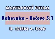 Baník Rakovnica - FC Kečovo 5:1 (0:1). Pred slabou návštevou futbalového zápasu 4. kola, keď niektorí diváci, najmä z radov domácich sa unúvali si pozrieť toto stretnutie, mohli byť nakoniec sklamaní, že ho nevideli. Najmä kvôli šiestim gólom, ktoré v tomto zápase II. triedy padli. Hráči Baníka hrali v prvom polčase veľmi chaoticky, bez pohybu. Hostia, napriek tomu, že sa ženil ich hráč, pohybovali sa celkom slušne. V 38. min. sa dokonca ujali vedenia gólom Gonosa, ktorý síce vystrelil, ale vietor, ktorý náhle zadul, loptu na prekvapenie všetkých, stočil do siete domácej brány.